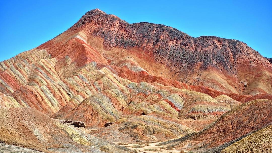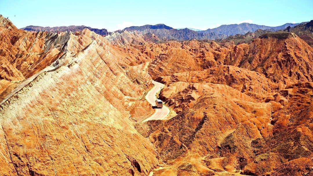 近日,在甘肃张掖七彩丹霞景区,远眺群山,只见红、黄、橙等多种鲜艳色彩交织在一起,仿佛打翻了大自然的调色盘。
