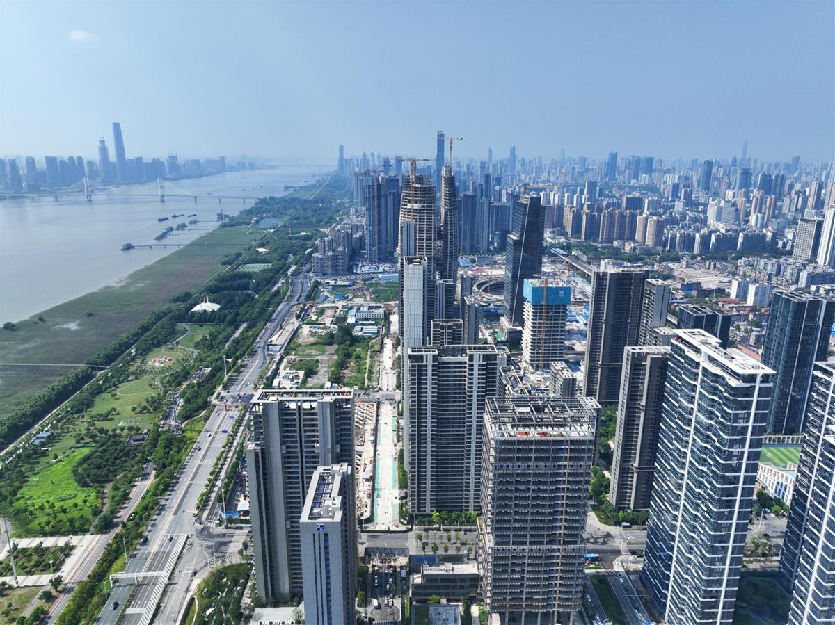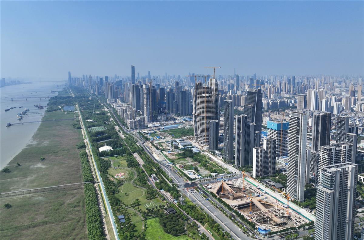 8月22日,在航拍镜头下,武汉汉口滨江国际商务区的核心地带呈现出一派繁忙的建设景象:泰康金融中心已封顶,周大福金融中心的超级基坑工程也在稳步推进。此外,中信泰富滨江金融城预计将在明年年中交付其首栋超5A级的甲级办公楼。