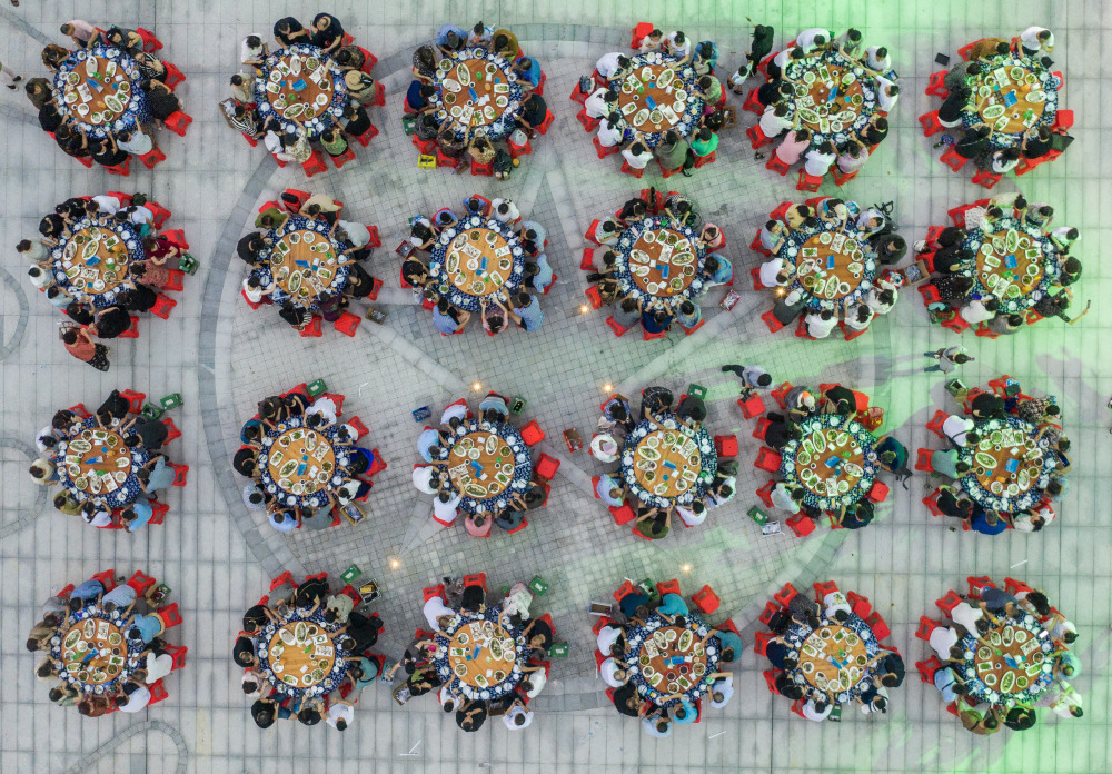 8月23日在岱山县长涂镇拍摄的海岛特色黄鱼宴(无人机照片)。新华社记者 徐昱 摄