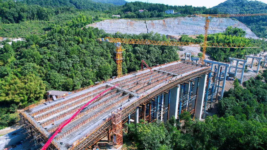 秋季虽至,炽热不减。交通建设者们头顶骄阳,挥汗如雨,助力宜来高速公路柴埠溪特大桥横跨峡谷。