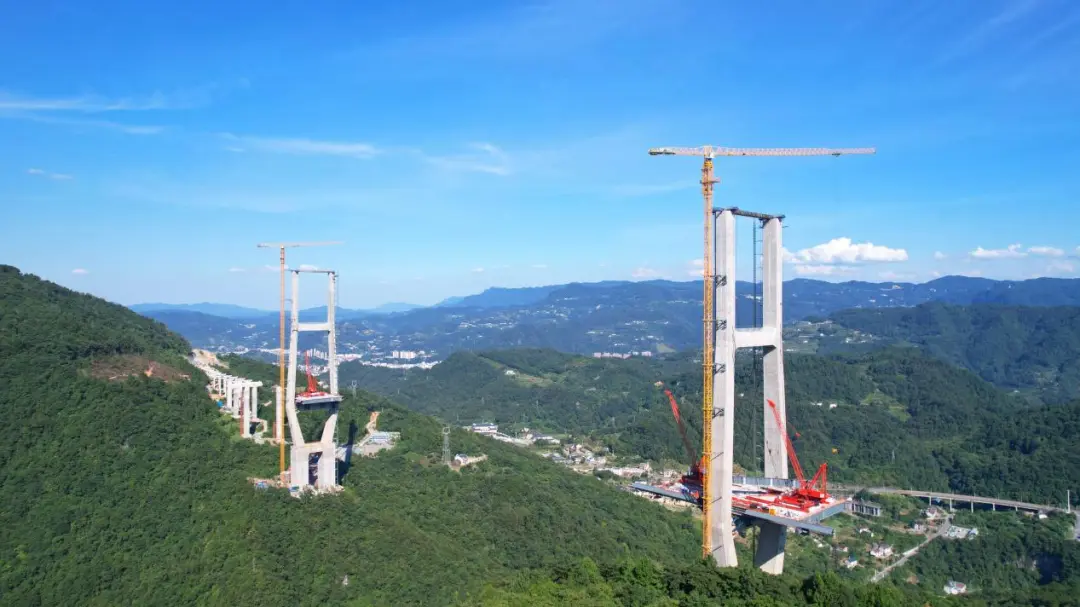 目前,大桥两岸主塔已封顶,桥面已完成6个施工节段,预计年底有望达成桥面施工进展过半。