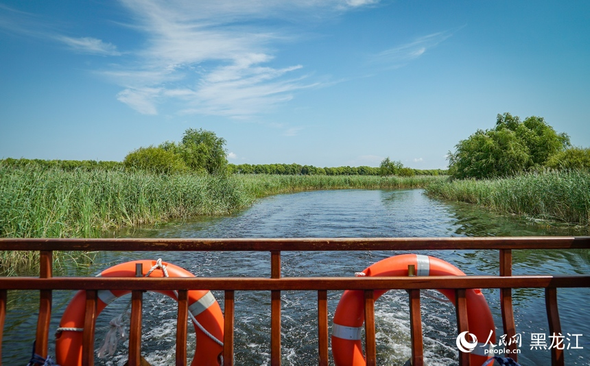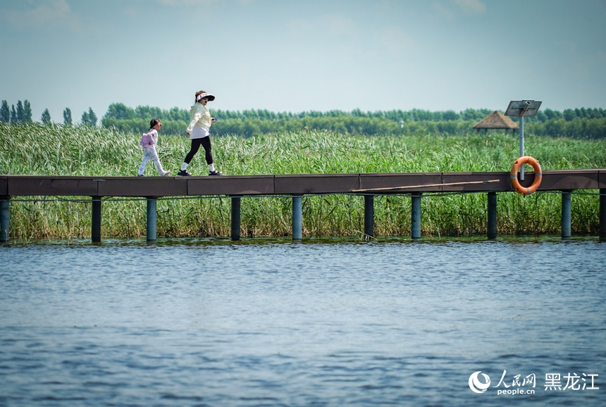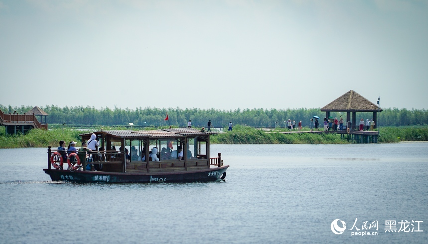 芦荡飞鸟啁啾,舟上笛歌悠悠。近年来,富锦国家湿地公园通过建设观景平台、观鸟塔、水上观光木栈道等设施,形成了集旅游观光、休闲度假、自然教育于一体的特色生态旅游景观区,现已成为富锦市的“生态名片”、佳木斯东部的“璀璨明珠”。