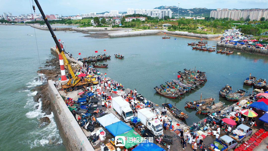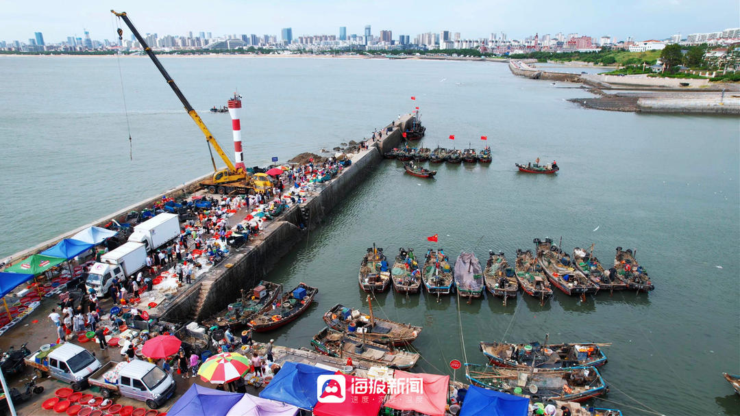 9月1日中午12点,长达4个月的伏季休渔期结束,日照正式开海。随着渔船陆续归港,日照市大泉沟渔港热闹了起来。9月2日三点起,近海捕捞的渔船陆续返港,随着满载而归的渔船越来越多,一筐筐鲜活的螃蟹、八蛸、爬虾等海鲜被搬运上岸,上午九点起,渔市便迎来了高潮,叫卖声、讲价声,热闹非凡。