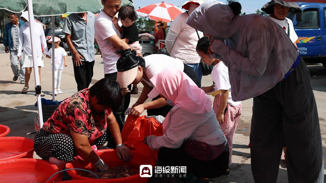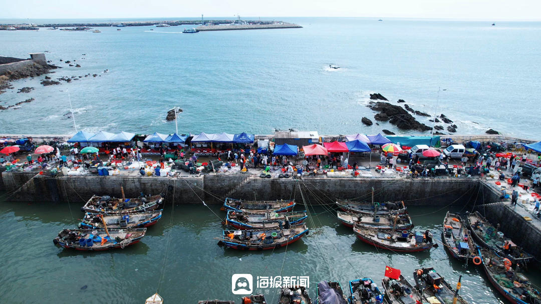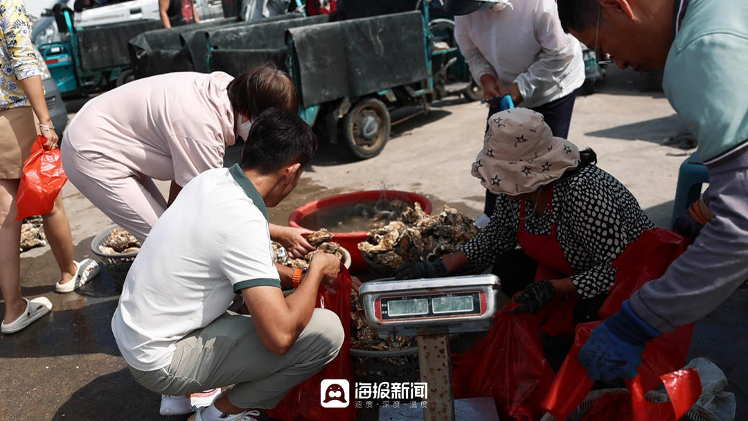 随着上岸的海鲜增多,码头人来人往,有人手提着好几袋子海鲜回家,有人直接特地推着小推车来抢购。记者在多个摊位前采访得知,黄花鱼价格为6元—7元每斤,生蚝价格约为5元每斤,鲳鱼价格为8元—10元每斤,个头小些的螃蟹价格多为15元一斤,个头大些的螃蟹35元一斤,皮皮虾价格约25元一斤,鲅鱼价格为7元—10元每斤。