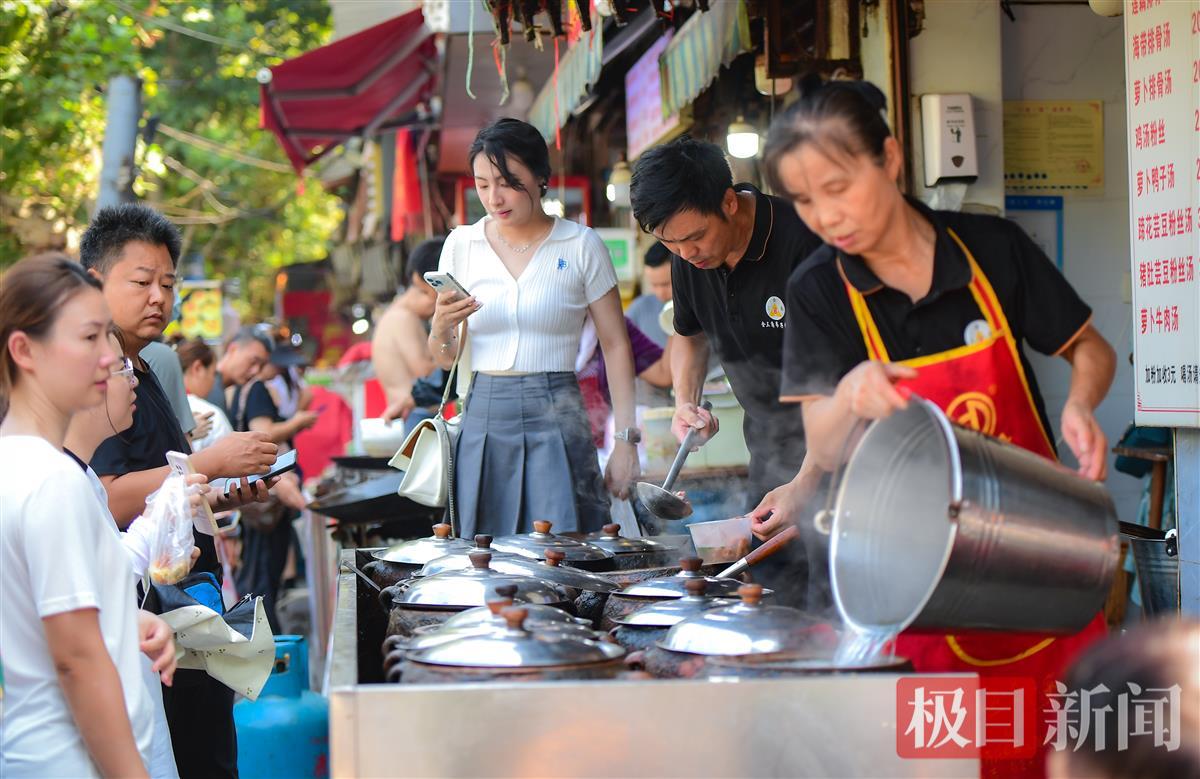 老街上的美食店铺成为了市民争相打卡的热门地点。从清晨到傍晚,各家餐馆、小吃摊前人头攒动,热闹非凡。其中,一家历史悠久的糊汤粉馆门前更是排起了蜿蜒长龙,队伍绕过街角,食客们耐心等候,只为那一口地道的家乡味道。店内热气腾腾,每一口糊汤粉都承载着对传统美食的执着与热爱,让这份等待变得格外值得。