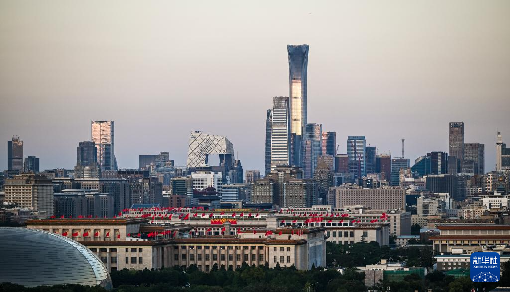 9月2日黄昏,北京CBD的高层建筑反射出夕阳金色的光辉。