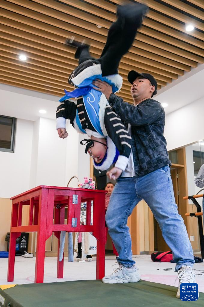 小昆班专职老师周杰在石牌中心小学校训练房内指导学员训练(9月6日摄)。