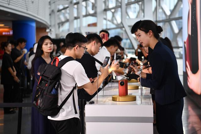 9月10日,观众在发布会现场体验华为手机。新华社记者 梁旭 摄
