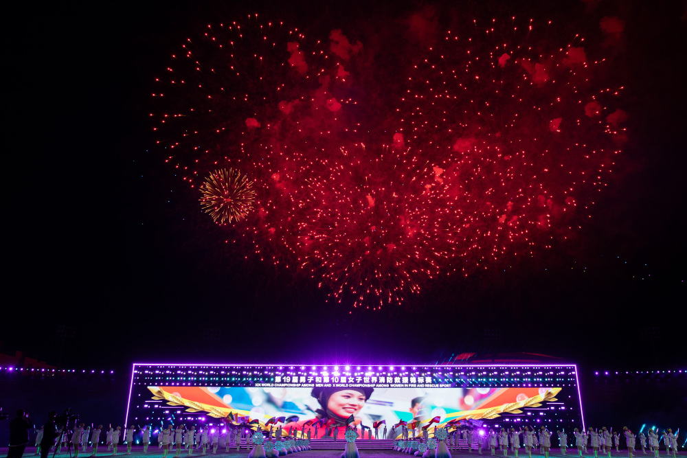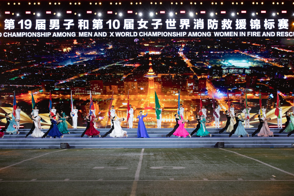 这是9月10日拍摄的第19届男子和第10届女子世界消防救援锦标赛闭幕式现场。新华社记者 张涛 摄