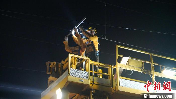 图为工作人员在对接触网进行打磨。蔡星宏 摄