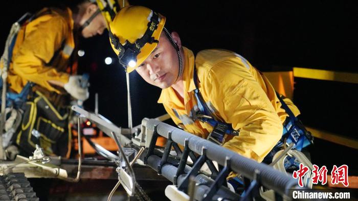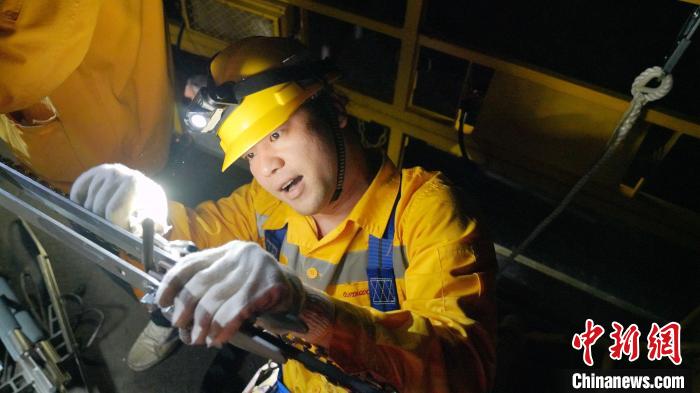 图为工作人员在拧紧分段绝缘器的螺丝。蔡星宏 摄