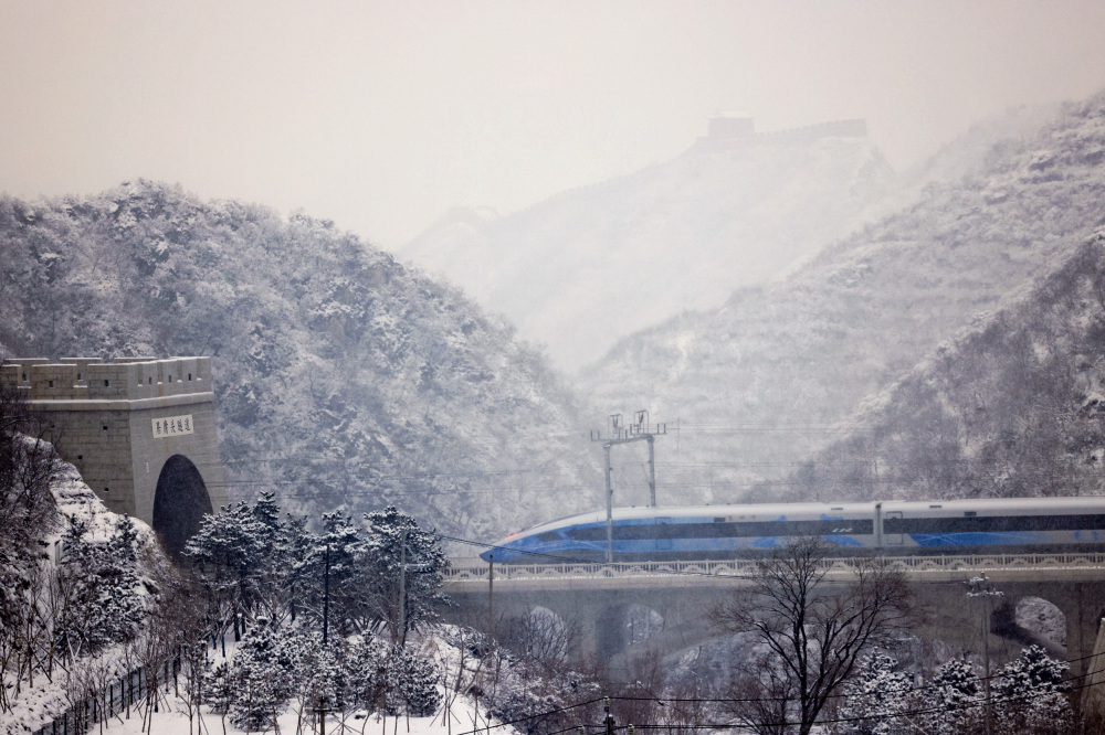 2022年1月21日,京张高铁列车经过居庸关隧道,从北京驶向太子城。新华社记者 邢广利 摄