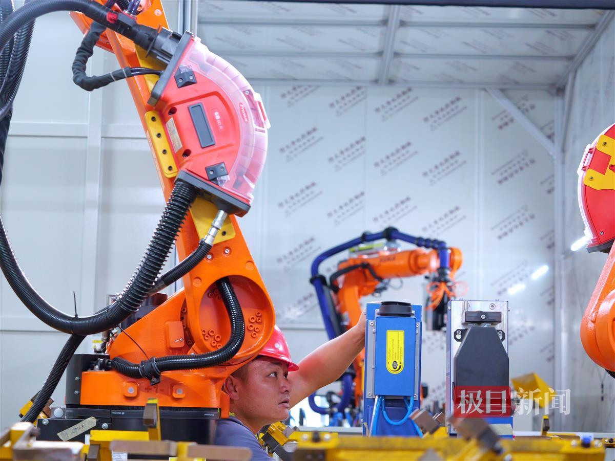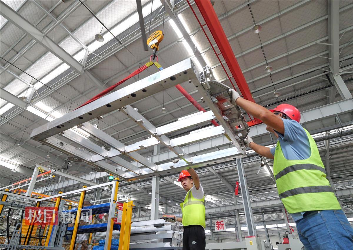 9月13日,极目新闻记者走进位于湖北鄂州市华容区的华工科技智能制造产业园3期厂房,一条长达150米的新能源汽车铝合金电池托盘全工艺生产线映入眼帘。目前整条自动化线体正处在安装调试阶段,组装进度已达80%左右,基本上可以看到其完整的运作流程。