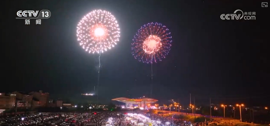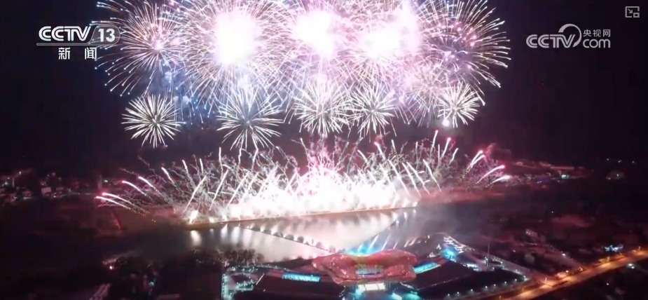 烟花产业是浏阳亮眼的名片。沿着蜿蜒的浏阳河,8500多发礼花弹升腾而起,这是浏阳精心准备的盛大烟花秀。叠翠流金的焰火照亮夜空,让充满中式美学的画面吸引十多万游客汇聚在此,共贺祖国。