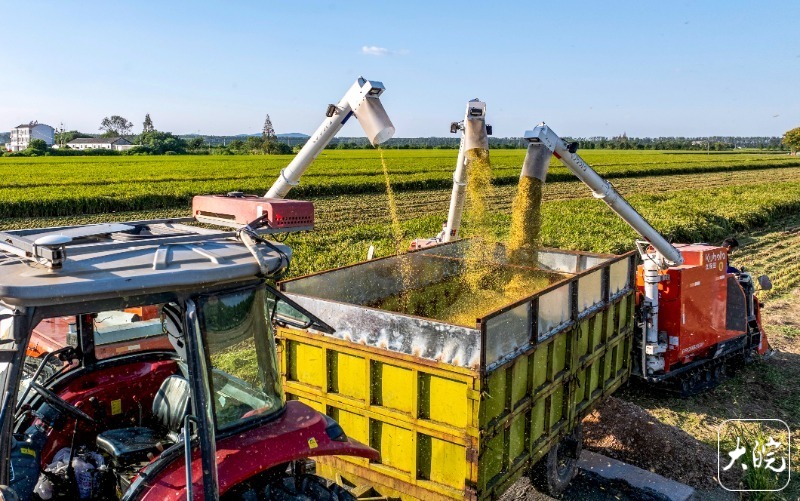 庐江县是全国双季稻主产区,全年水稻种植面积160万亩。秋分时节,该县的单季稻渐次进入成熟期,农业部门紧急调集大型机械加紧推进水稻收割,同时启动全县所有烘干设备,确保粮食颗粒归仓。