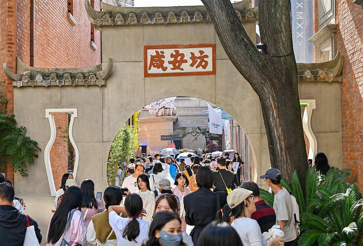 10月2日,武汉咸安坊人流如织,市民游客逛一逛老汉口的里份。