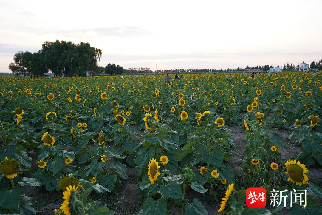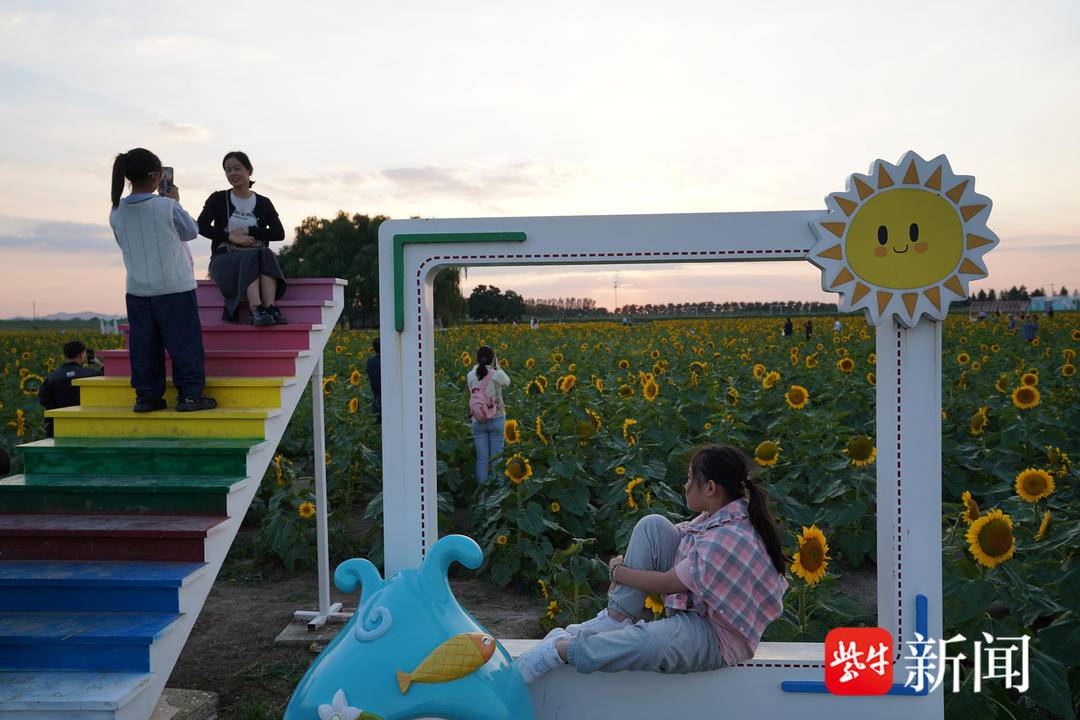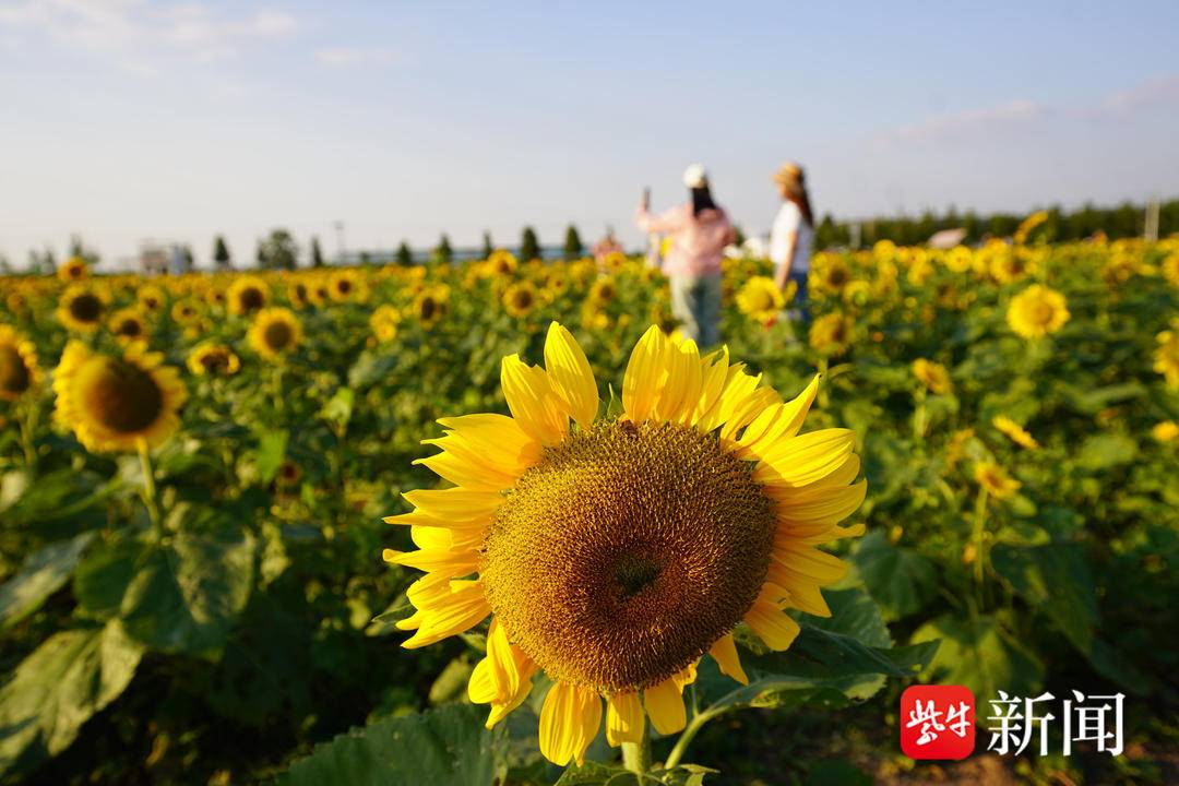当微风拂来,向日葵花海随风摇曳,高低错落,荡起层层金色波浪。此时已进入盛花期的园区里,不少市民前来观赏,沿着赏花道路漫步其中,金灿灿的花盘,就像一张张“笑脸”,耀眼而热烈,浪漫至极。