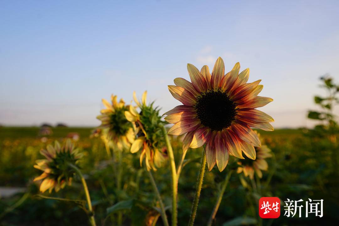 有意思的是,虽然在人们记忆里,向日葵都是金黄的,但这里的向日葵是彩色的,深黄、米白、紫黑色……