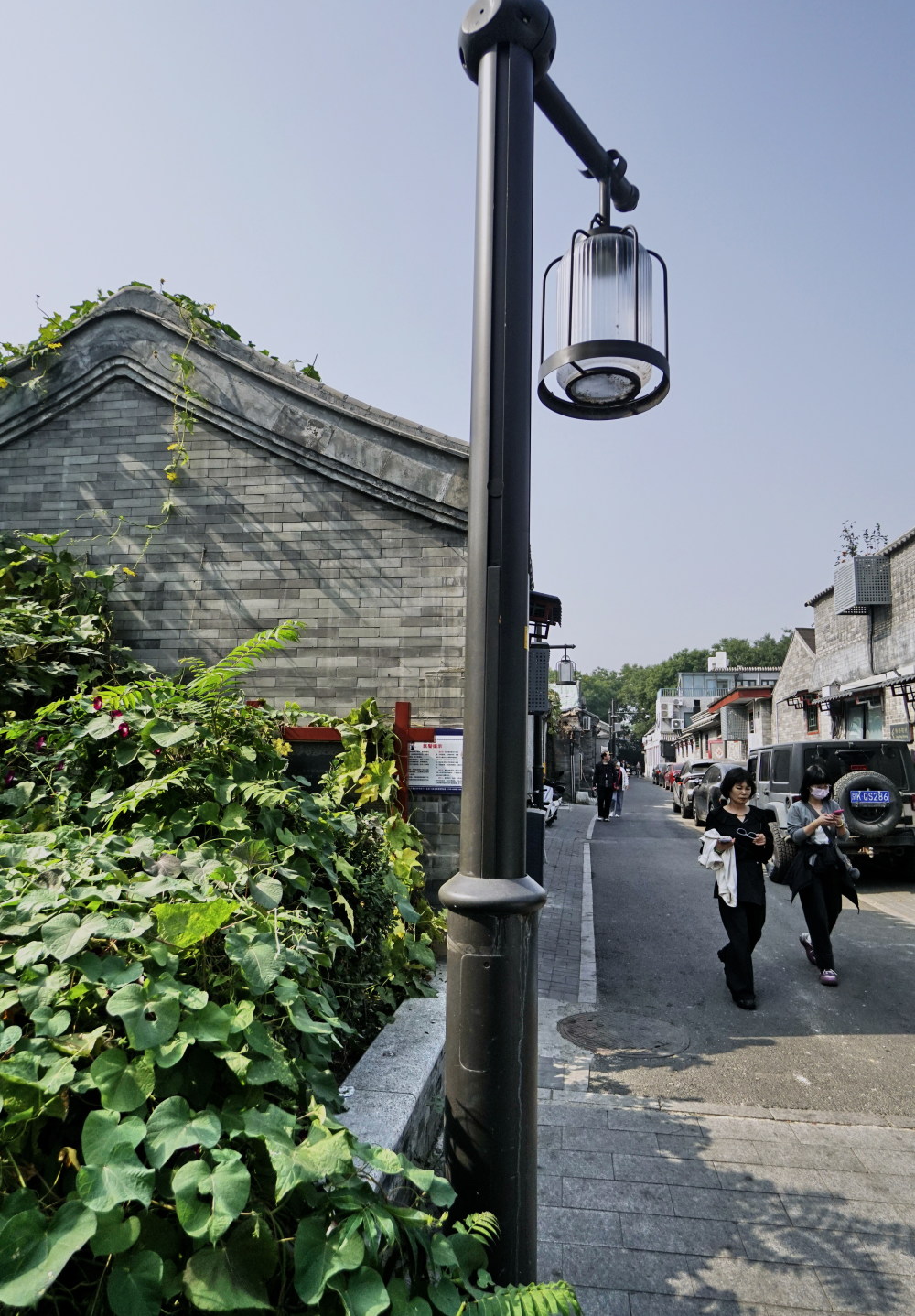 全部实现架空电线入地的钟楼湾胡同安装的古色古香的路灯(10月12日摄)。新华社记者 李欣 摄