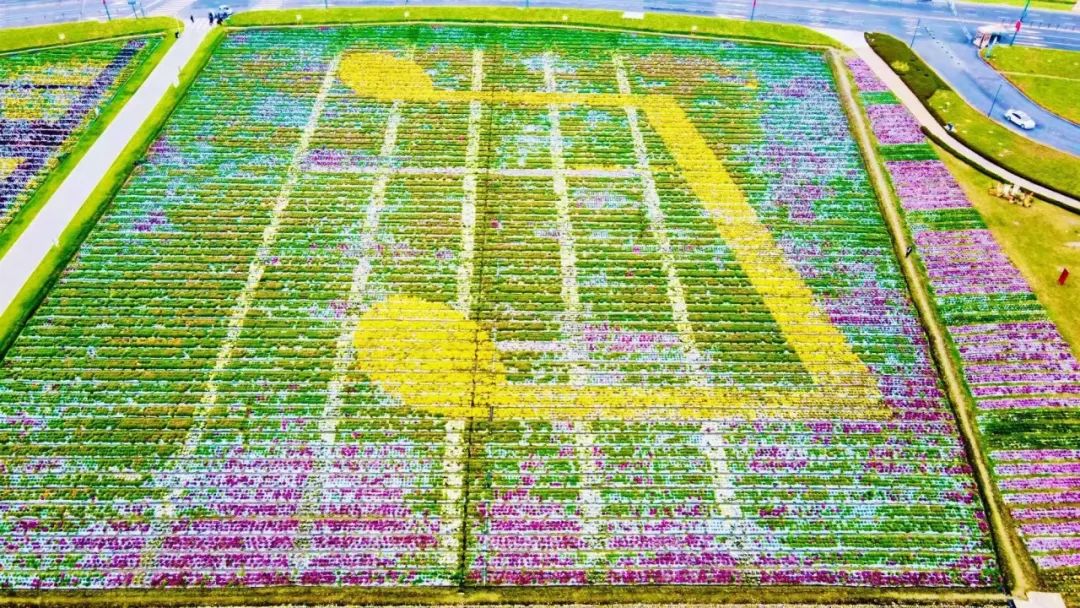 据了解,这处景观名为“大地乐章”,按“琴键+五线谱+音符”形式构图,以道路为框、菊花作画,用多彩缤纷的大田彩绘奏响“世园欢迎你”的大地乐章,是本次菊花景观的“重头戏”。