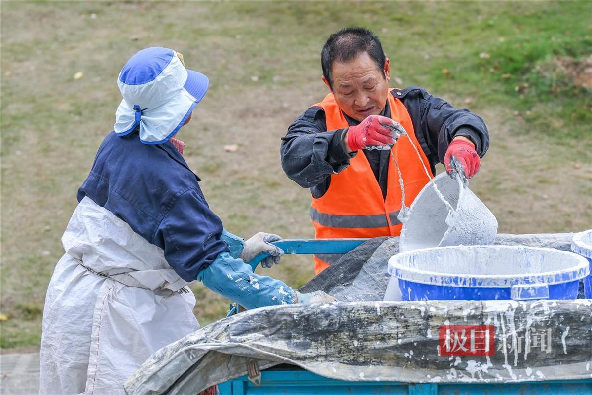 将搅拌好的石灰水分装到一个个小桶内,工人们提着装满石灰水的小桶,穿梭林间,给一棵棵树干刷上石灰水。10月27日,极目新闻记者在武汉沙湖公园C区看到,园内多名园林养护工人正忙着给树干刷白。
