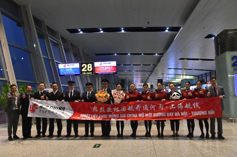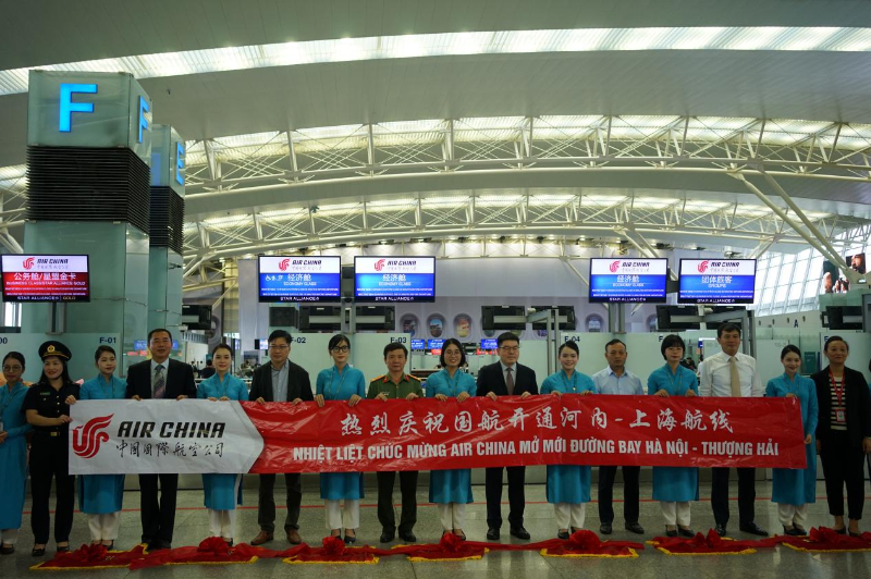 当天,中国驻越使馆以及越南港务、海关、边防、机场等7家单位参加首航仪式,共同庆祝国航上海-河内航线首航成功。