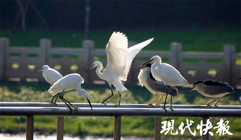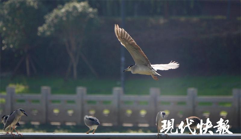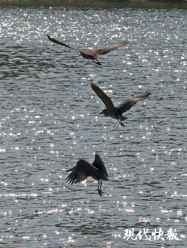 现代快报讯(记者卢河燕/文赵杰/摄)11月3日,暖阳高照,在南京鼓楼滨江风光带,一群鹭鸟晒太阳、捕食,萌态十足,自由自在。