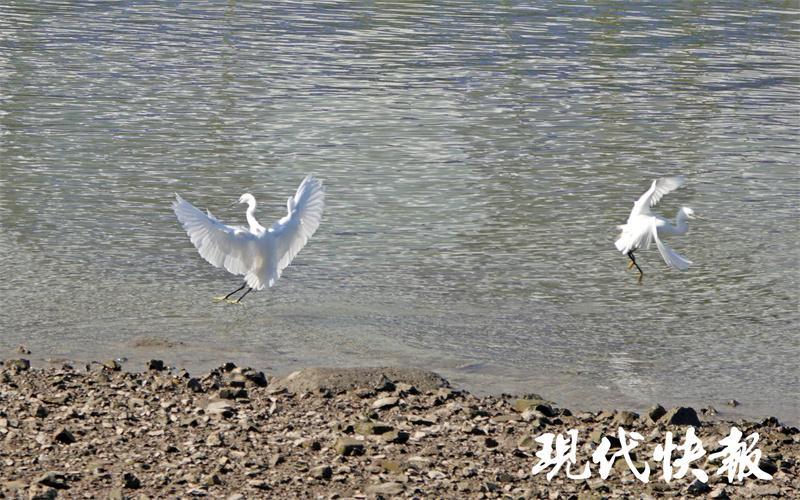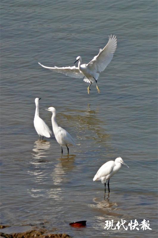 鸟儿嬉戏、梳理羽毛、晒太阳的场景,成为近年来江边的一道自然景观。