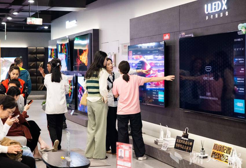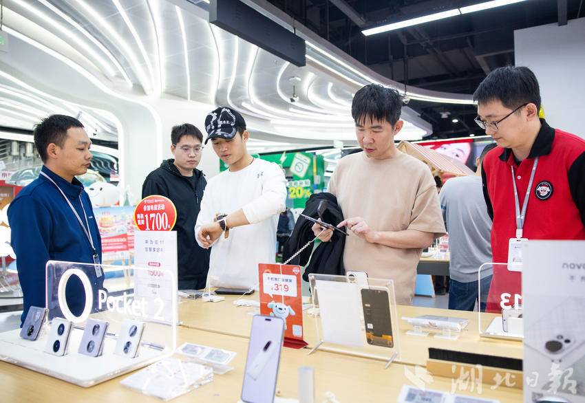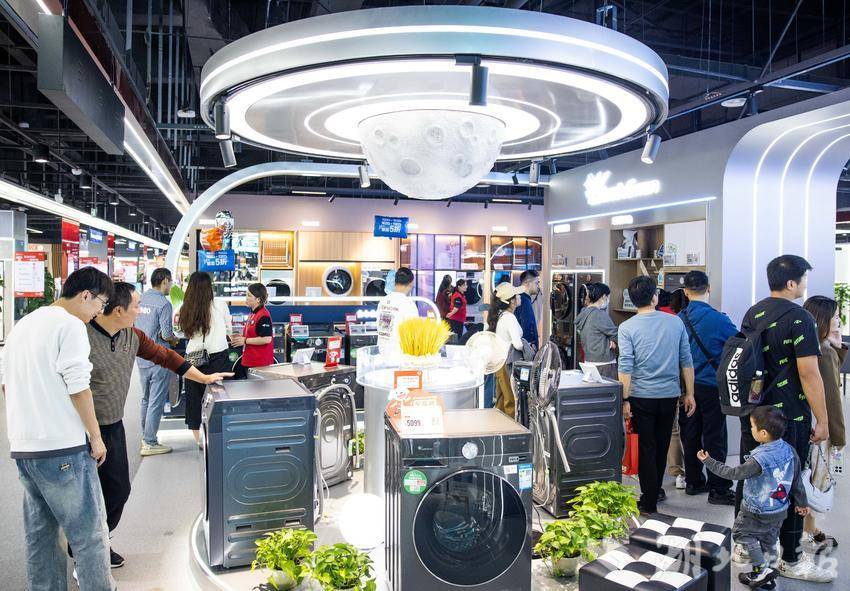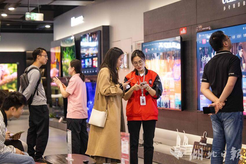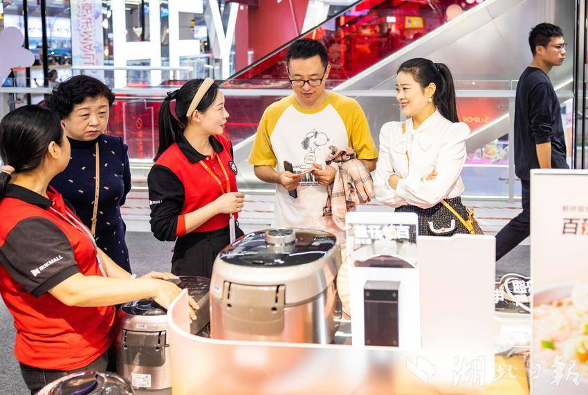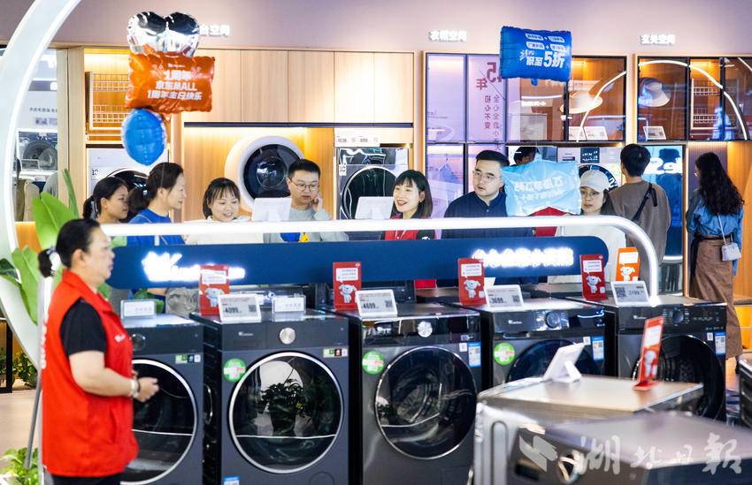 11月3日,武汉京东MALL店内,消费者正在选购家电用品。随着以旧换新政策的持续影响,叠加商家优惠政策,武汉京东MALL近期的顾客到店量明显增长,与去年同期相比,冰箱、洗衣机、空调、厨房电器、电脑等产品销售实现明显增长。(湖北日报全媒记者薛婷摄)