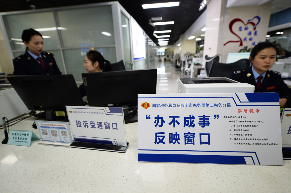 11月7日在安徽省马鞍山市政务服务中心税务部门服务台拍摄的“办不成事”反映窗口。新华社记者 刘勇贞 摄
