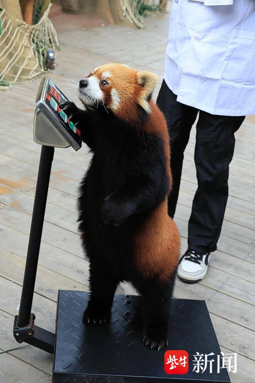 小熊猫大小撒娇卖萌专业修脚。饲养员们拿出美食引导小熊猫自己爬上体重秤,并在秤上直立身体量身高。小熊猫“桃妹”在体检中,尽显聪明又粘人的本性,抱住秤不撒爪,撒娇卖萌小熊猫萌态百出对体检项目表现得十分感兴趣。小象“金猪”量完脚脚还有专业修脚服务,一位饲养员负责给小象递送美食,另一位则认真地为小象修脚。享受VIP服务的小象修完左脚马上换成右脚继续,摇头晃脑甩甩可爱的长鼻子,仿佛在说这样的服务我很满意。