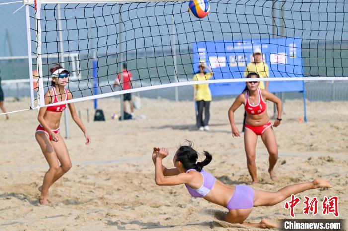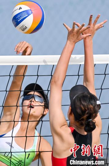 图为新疆旺源二队选手董金娣、樊雨涵对阵辽宁三队选手李金洋、戚瑞莹(黑衣)。