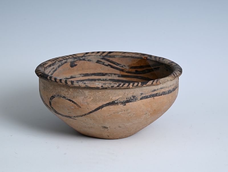 内外彩水波纹彩陶盆(11月5日摄)。新华社记者李贺摄