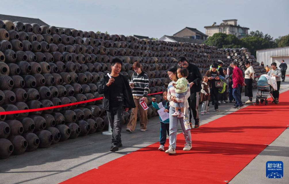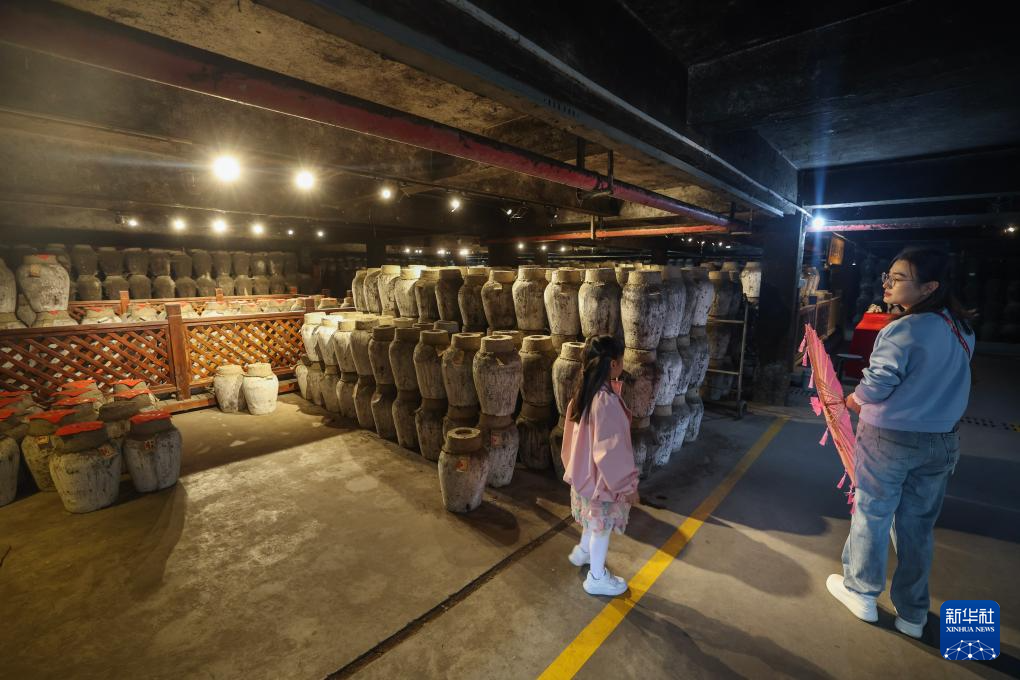 11月9日,游客在嘉兴市海盐沈荡酿造有限公司的地下酒窖内参观。