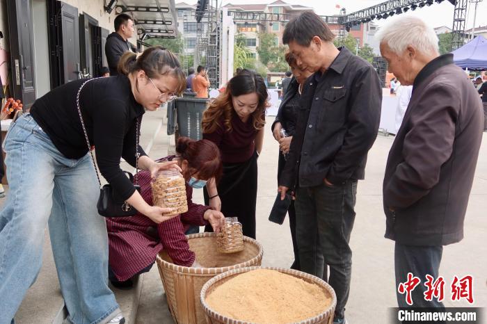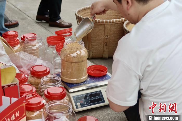 11月13日,消费者在购买红糖。糖蔗是浙江义乌红糖的原料,其生产核心区域位于该市义亭镇。该镇榨糖历史400多年,有关制糖技艺被列入中国国家级非物质文化遗产,眼下正值丰收季,现场一片忙碌。 中新社 记者 董易鑫 摄
