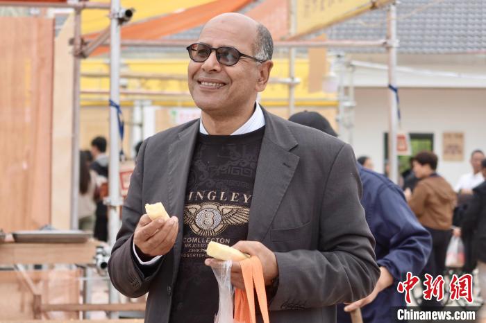 11月13日,外商品尝糖蔗。糖蔗是浙江义乌红糖的原料,其生产核心区域位于该市义亭镇。该镇榨糖历史400多年,有关制糖技艺被列入中国国家级非物质文化遗产,眼下正值丰收季,现场一片忙碌。 中新社 记者 董易鑫 摄