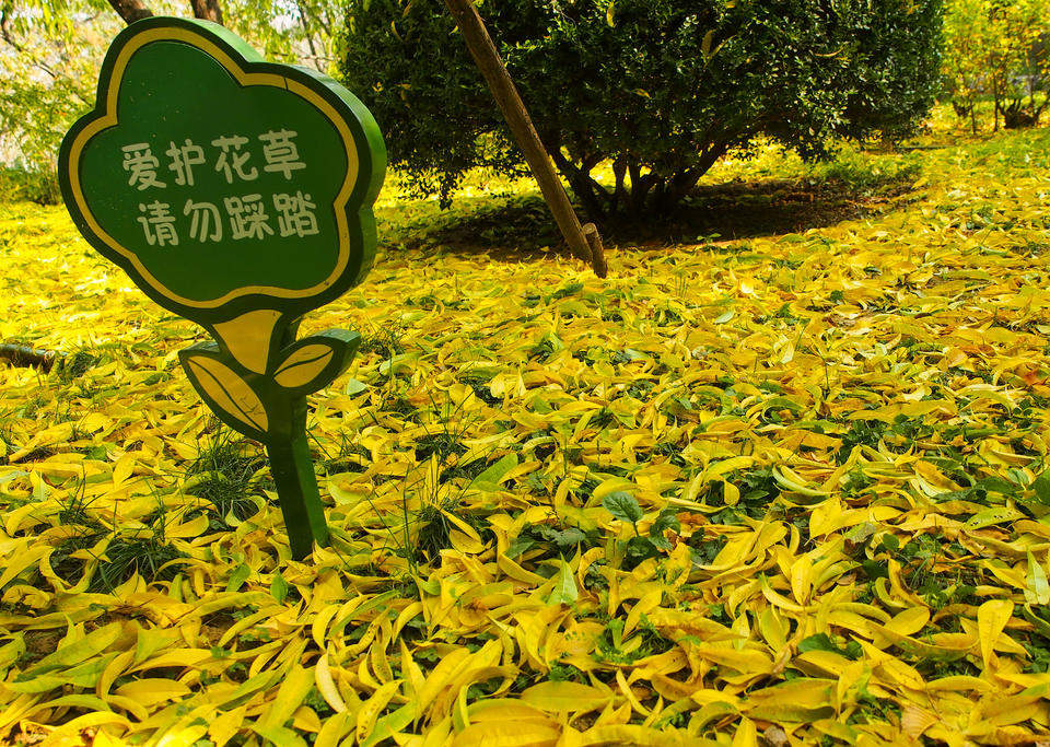 11月13日,一场柔和的秋雨潇潇飘落,引得济南落叶纷纷。泉城公园的各个区域,厚厚的落叶构成了美丽的秋景,展示了不同于春夏季节的独特魅力。