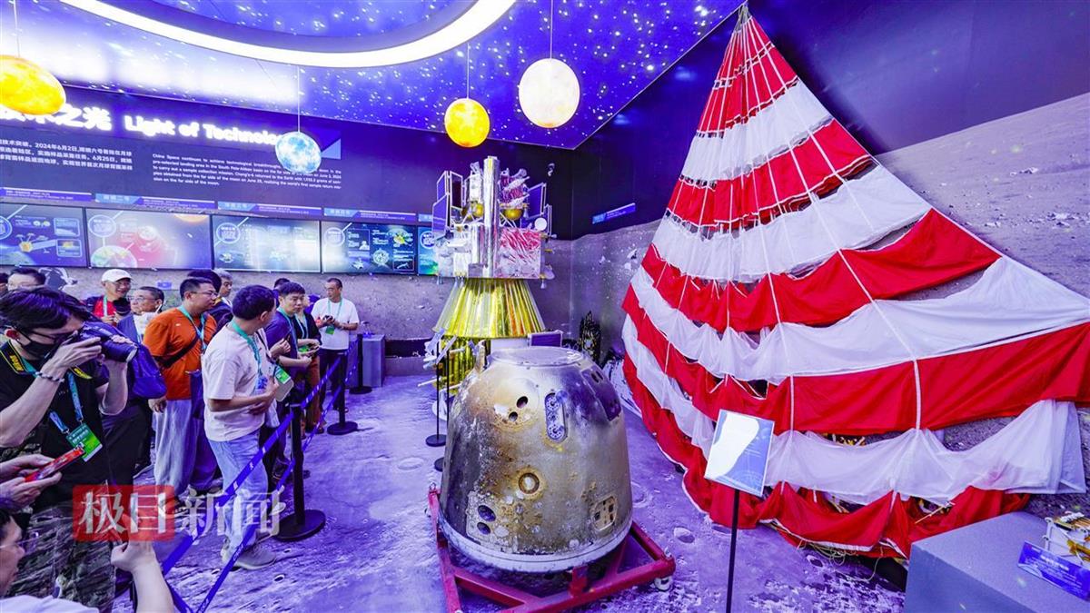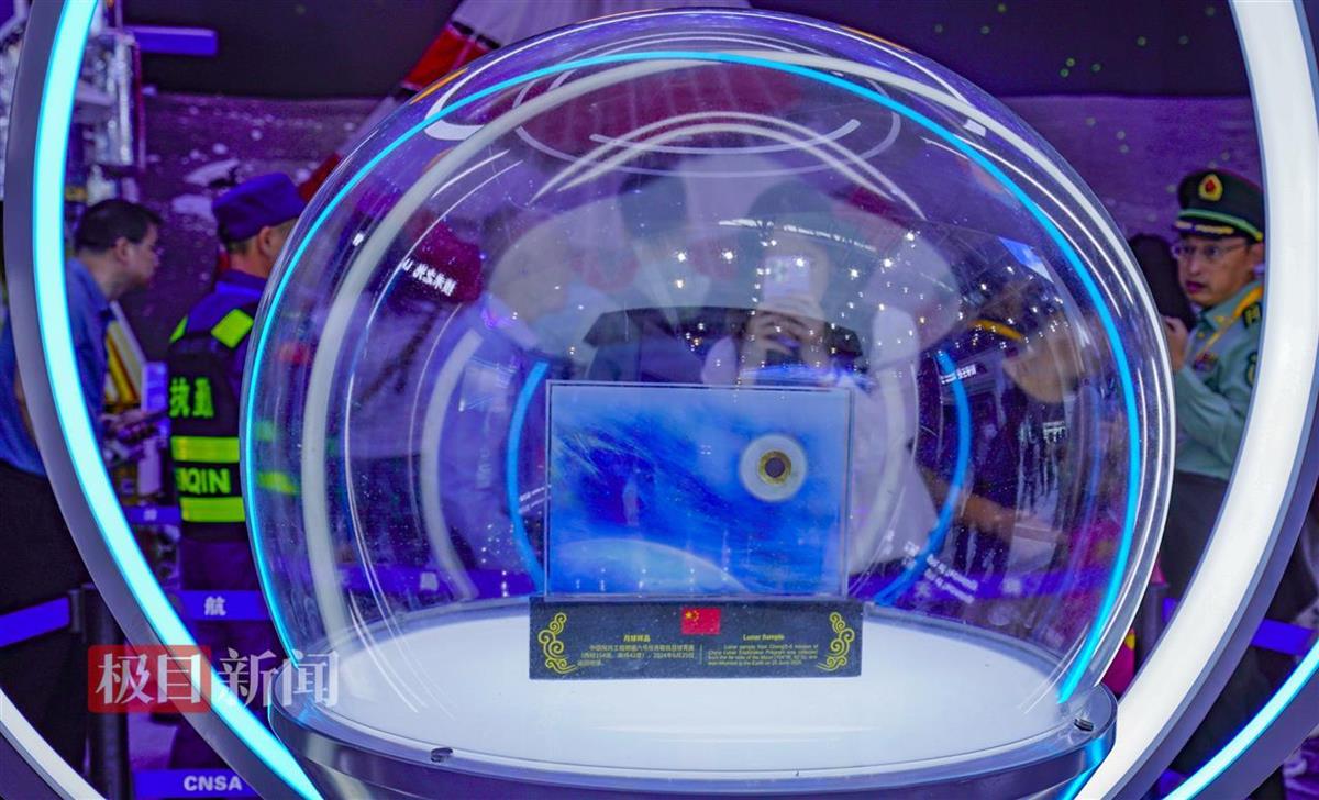 第十五届中国国际航空航天博览会12日在广东珠海开幕。11月14日,在国家航天局“中国航天”展台,嫦娥六号任务取回的月球背面样品首次向国内公众展出。公众还能够近距离接触嫦娥六号任务的返回舱、降落伞等珍贵实物。