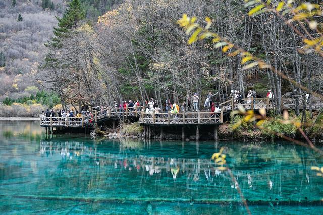 11月16日,游客在九寨沟景区五花海观光。新华社记者 王曦 摄