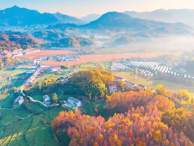 《乡村晨景美如画》2024年11月12日,湖北省黄冈市英山县杨柳湾镇河南畈村晨景美如画。王江摄(人民视觉)
