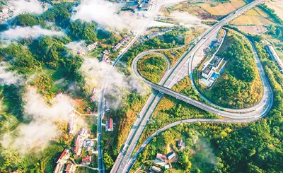 近日,沪武高速凤凰关水库路段车辆有序通行。近年来,湖北省黄冈市罗田县扎实推进交通路网建设,有效改善交通物流条件,带动了沿途乡村特色产业发展。王江 摄(中经视觉)