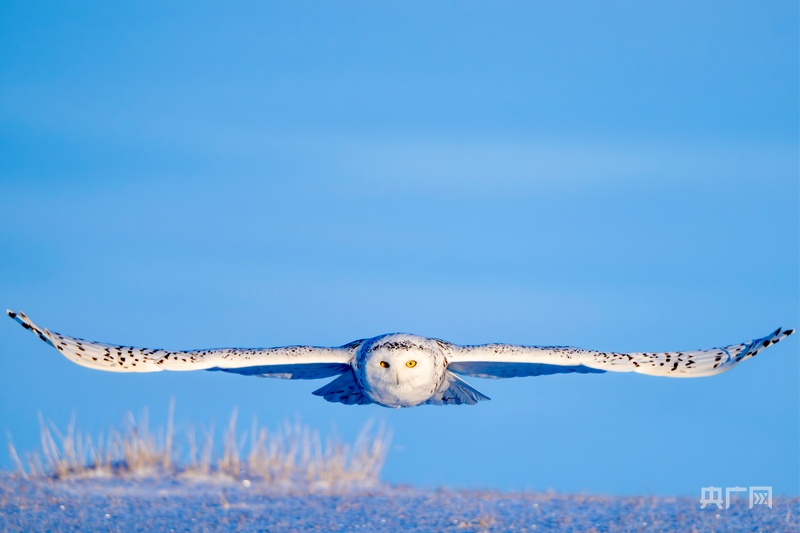 央广网呼伦贝尔11月18日消息(记者李春雪)随着冬日的脚步渐近,一群来自北极的神秘来客——雪鸮,开始了它们一年一度的南迁之旅。在内蒙古呼伦贝尔市新巴尔虎右旗,这片位于中俄蒙三国交界的广袤草原上,摄影爱好者们有幸用镜头记录下了这些白色精灵的矫健身姿和捕食时的敏捷动作。
