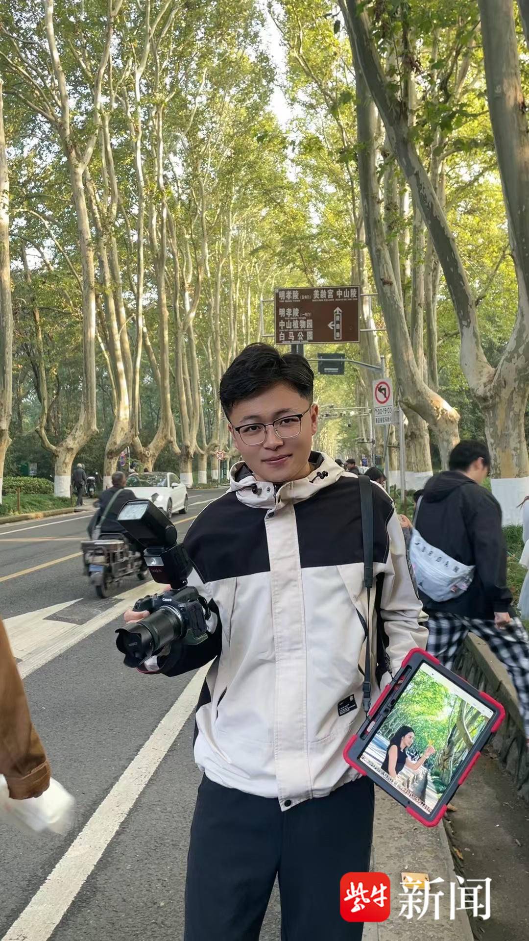 “今天挺忙的,早上在梧桐大道拍了4个顾客,下午有6个顾客,晚上还有顾客在夫子庙约拍。”11月22日,记者在梧桐大道碰见00后摄影师高杰,他告诉记者当天的拍摄安排,“我早上8点前就到梧桐大道了,这时候人少好出片。清晨人还不太多,大概九点半已经几步一个摄影师了,如果周末那基本上是人从众了。”