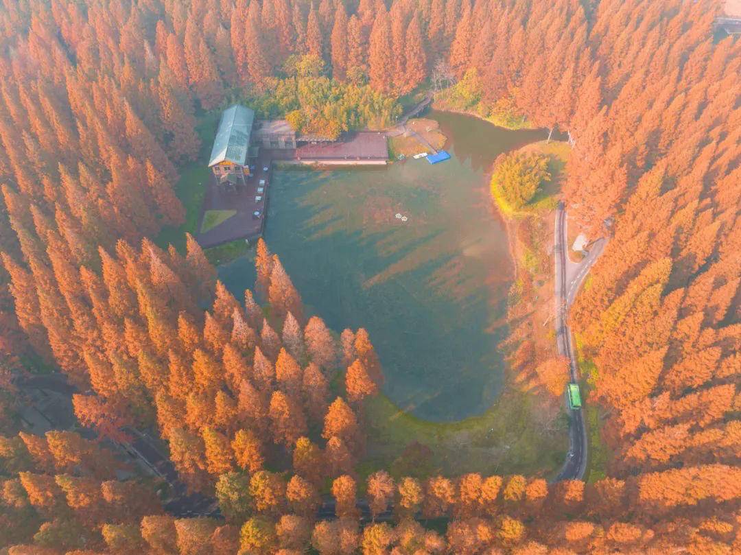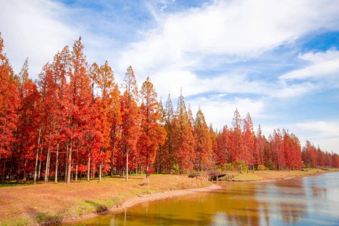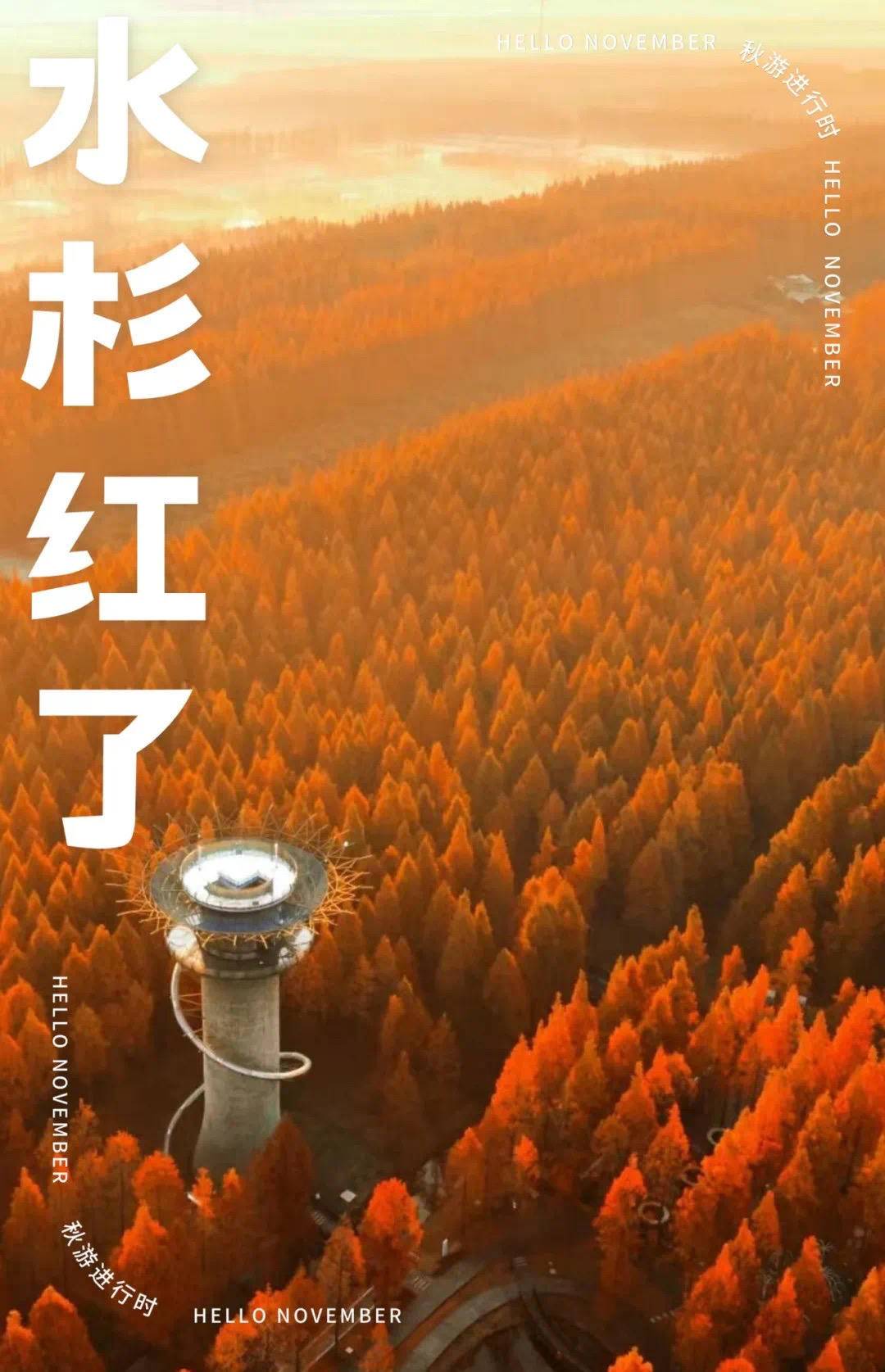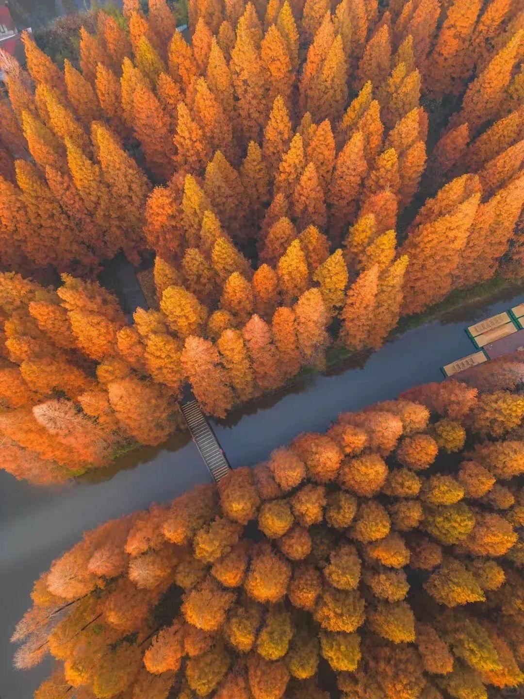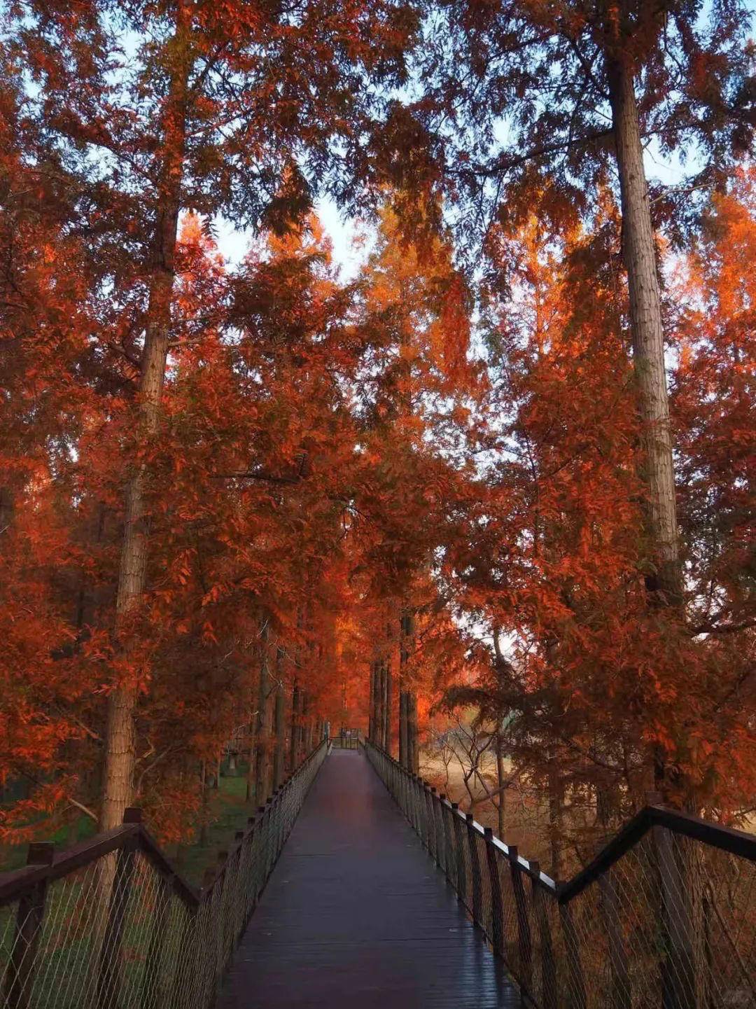 层林尽染、绚烂如醉、斑斓色彩、绵延不绝……在不经意间,盐城黄海森林公园红杉美景已悄然绽放渐入佳境。