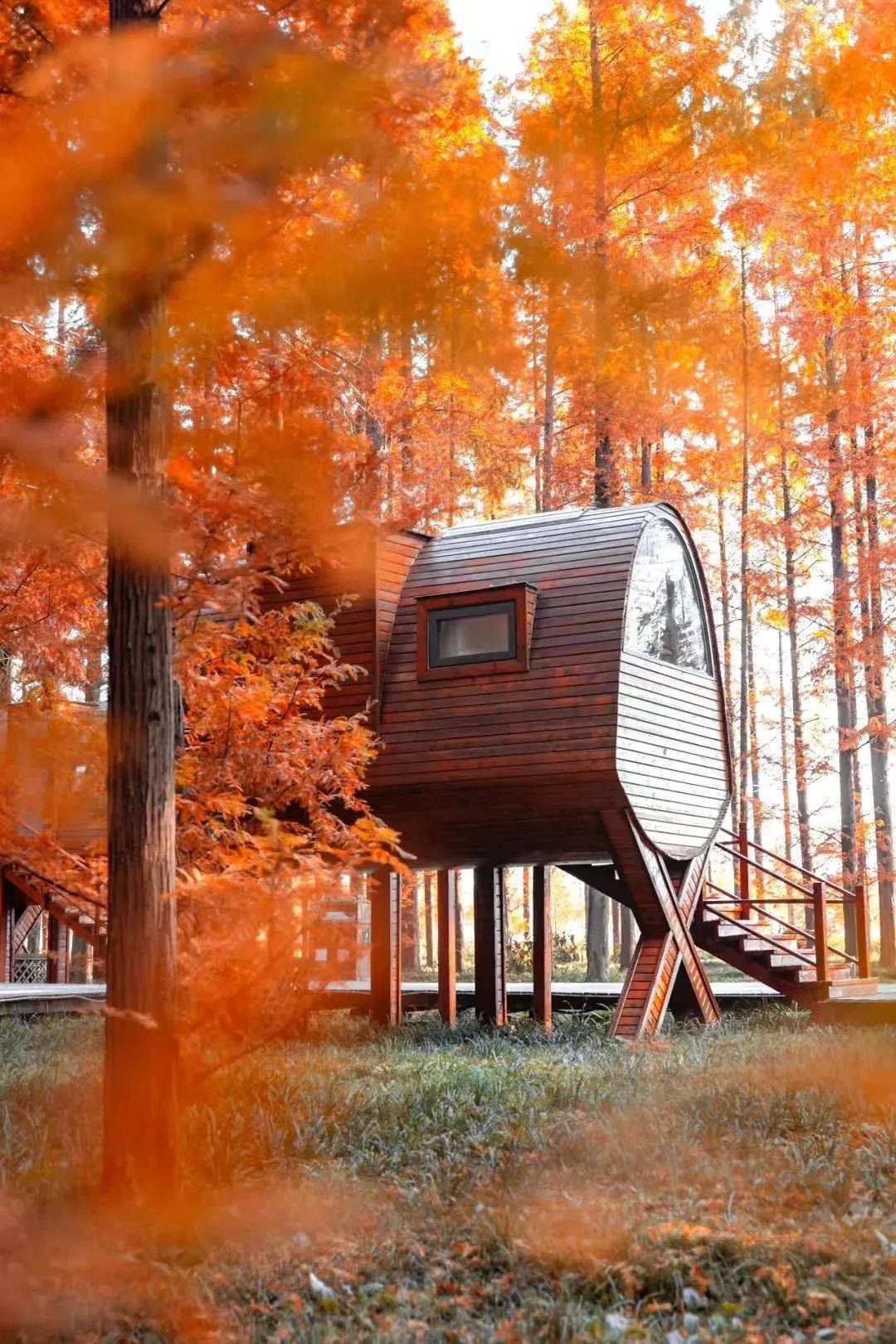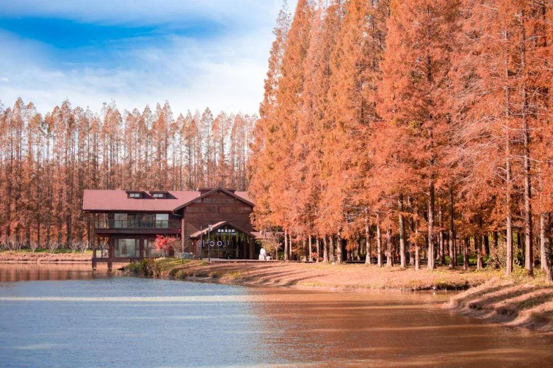 以红杉为背景,穿梭于木屋与林隐之间,黄海森林的红杉风光无时不刻不在绽放其独特魅力。