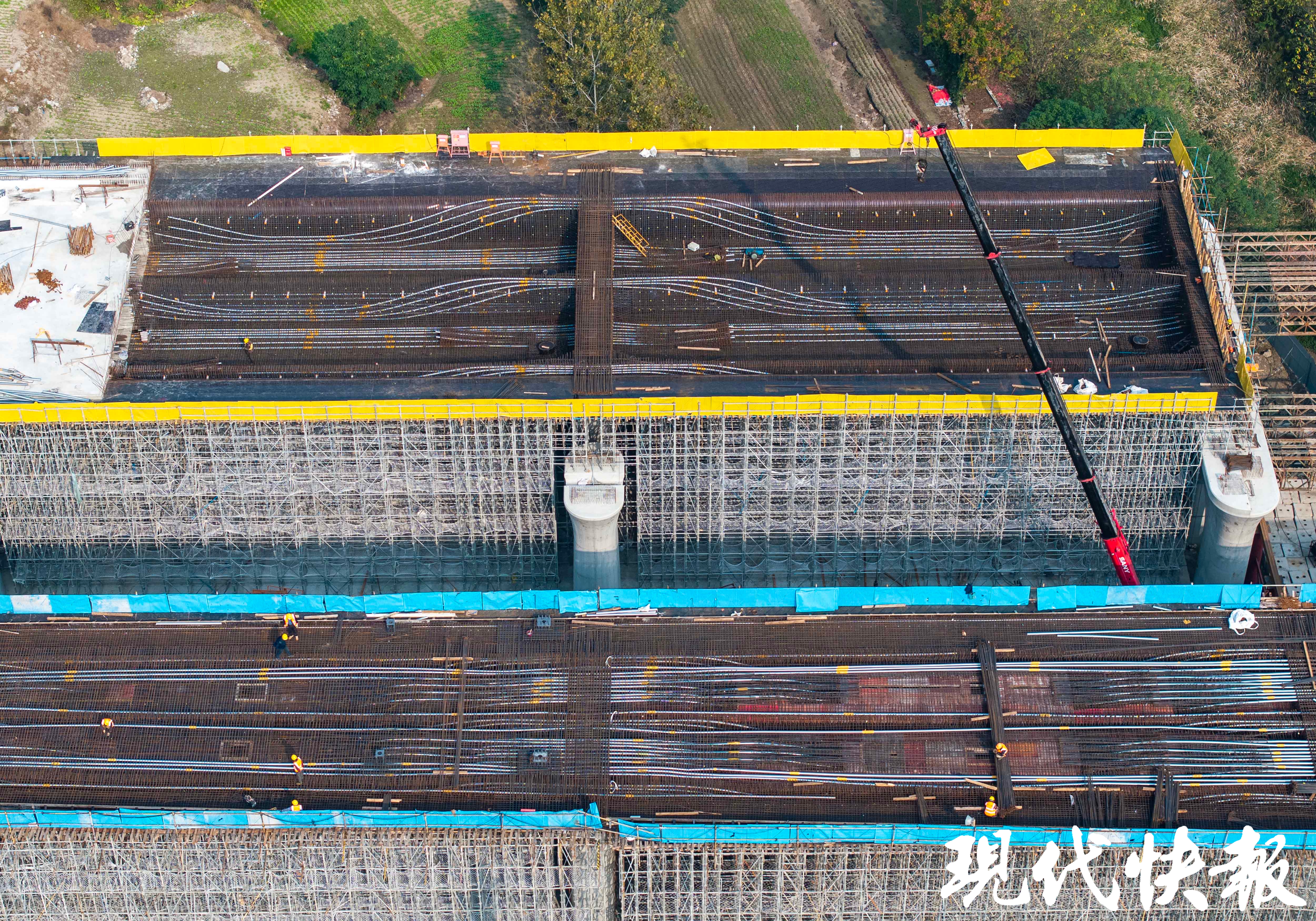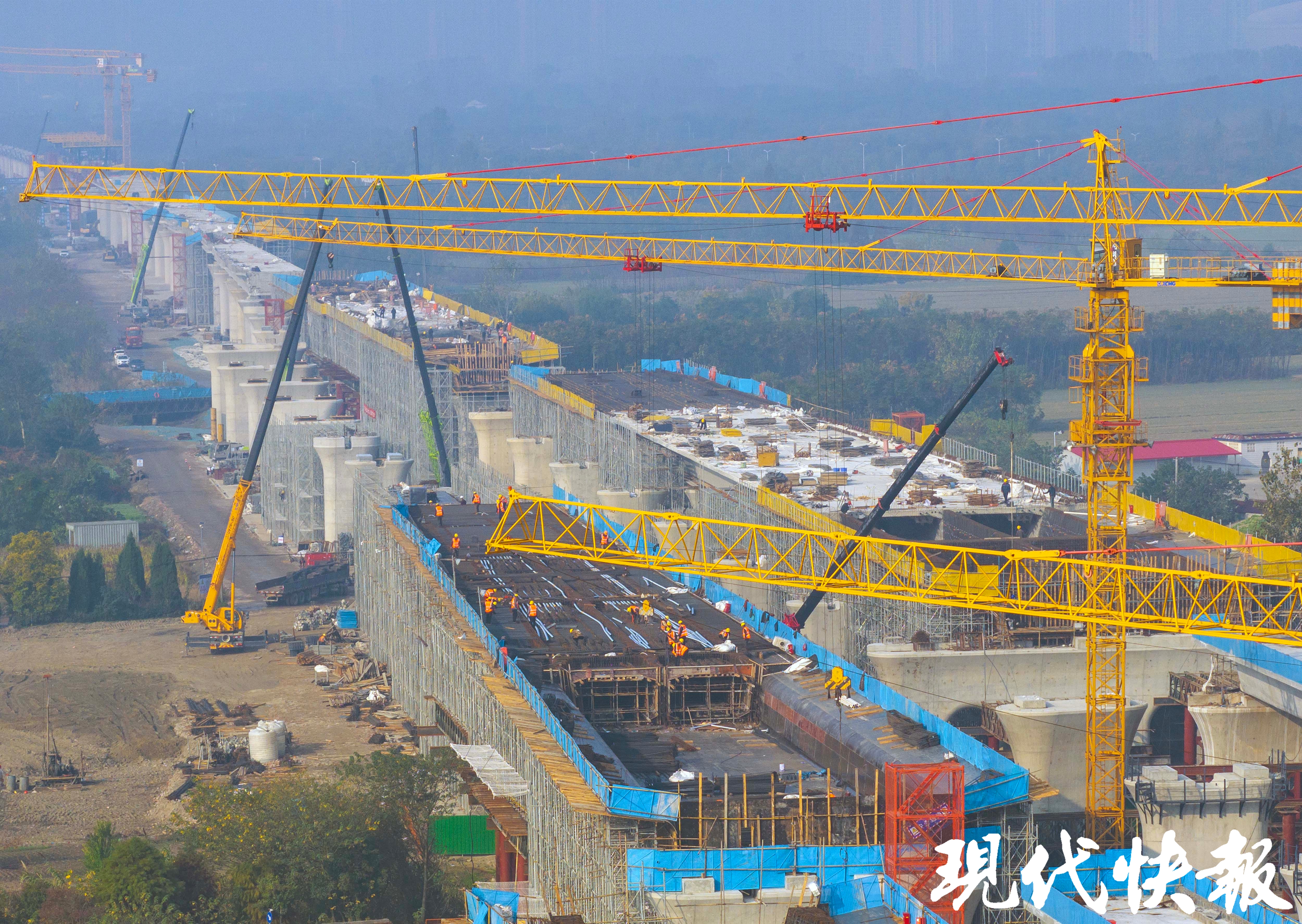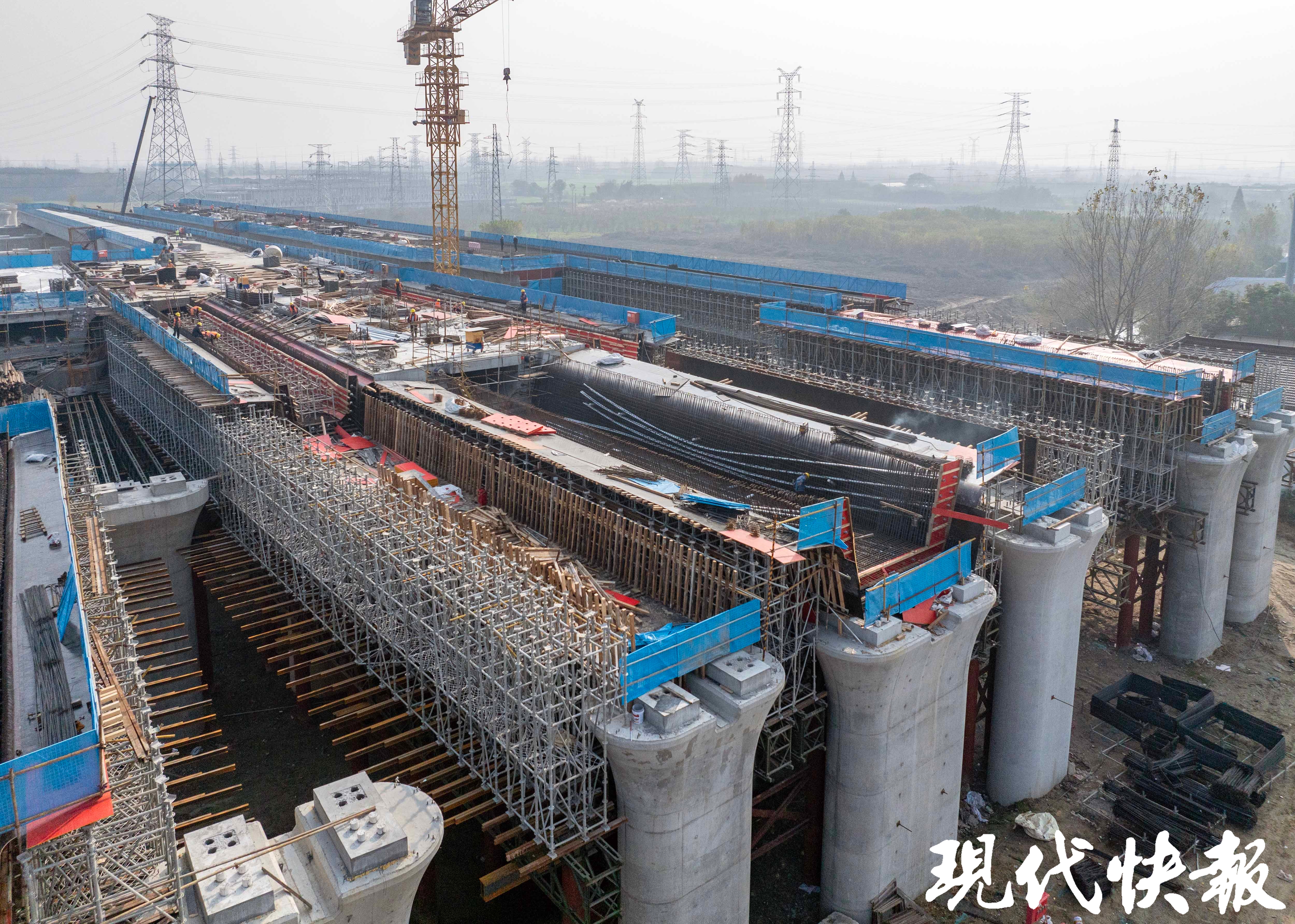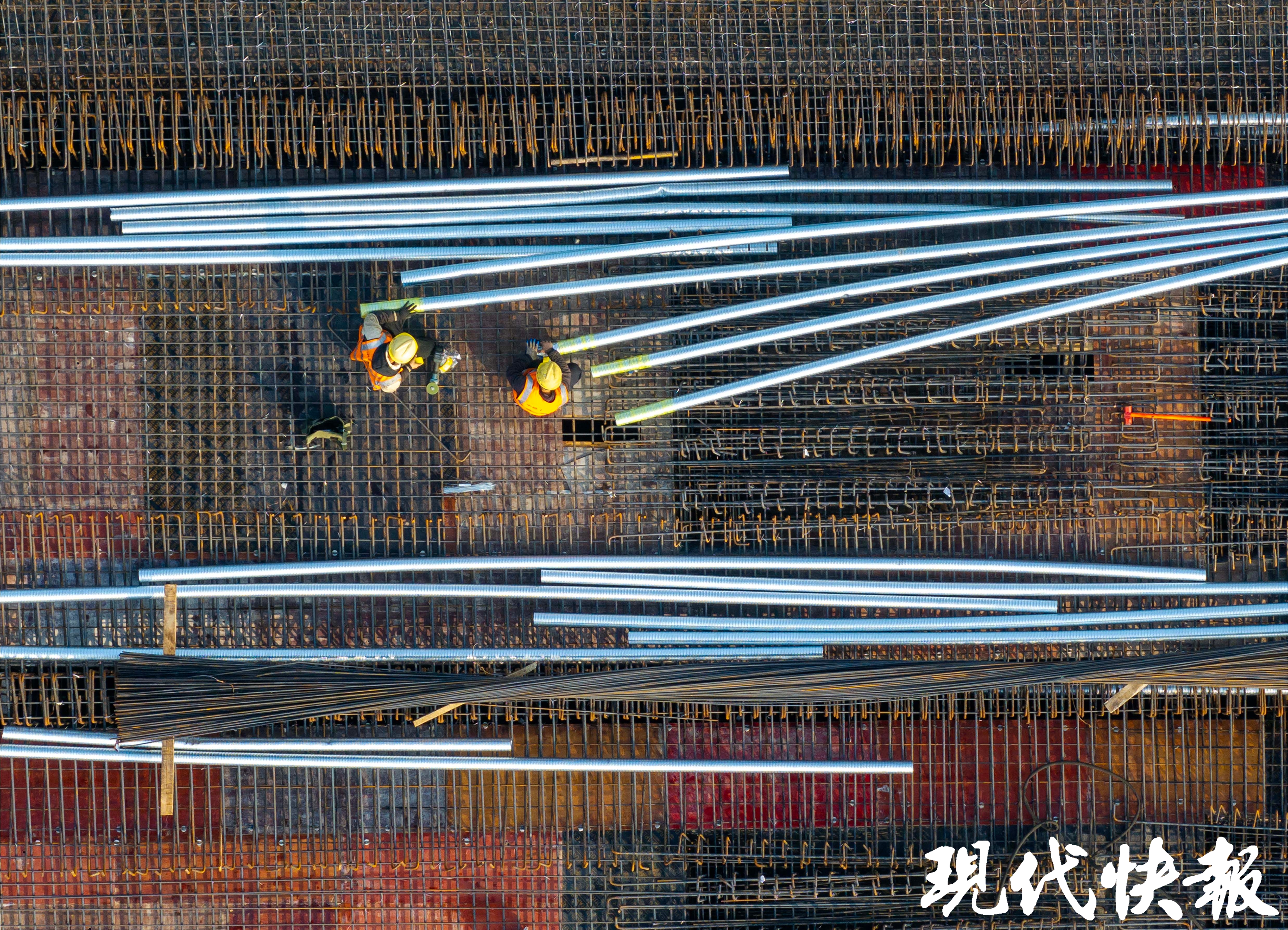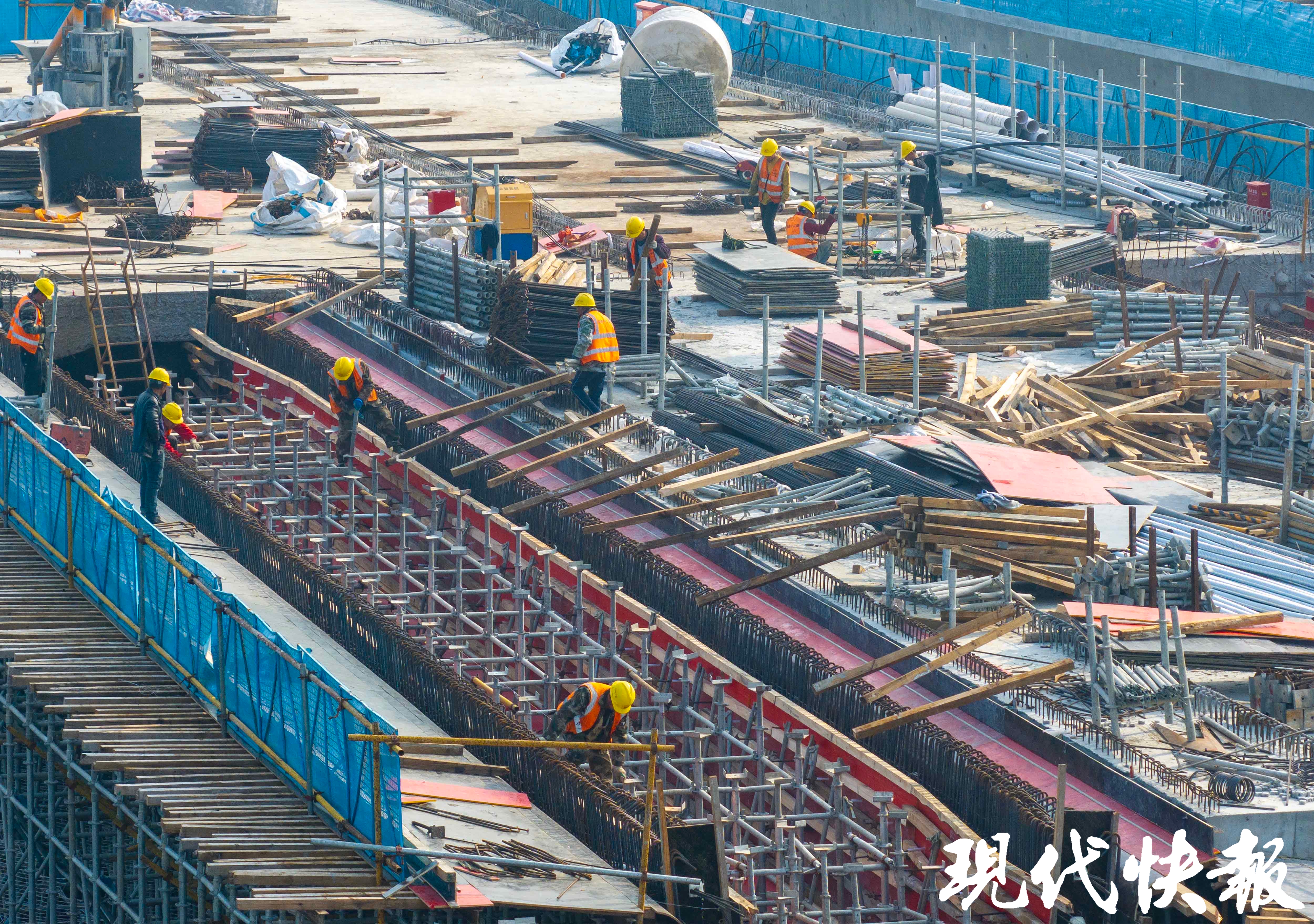 2024年11月22日,建设者对泰州市高铁南站综合交通枢纽项目主体结构进行施工。
