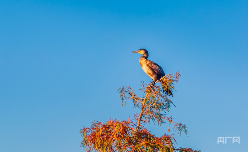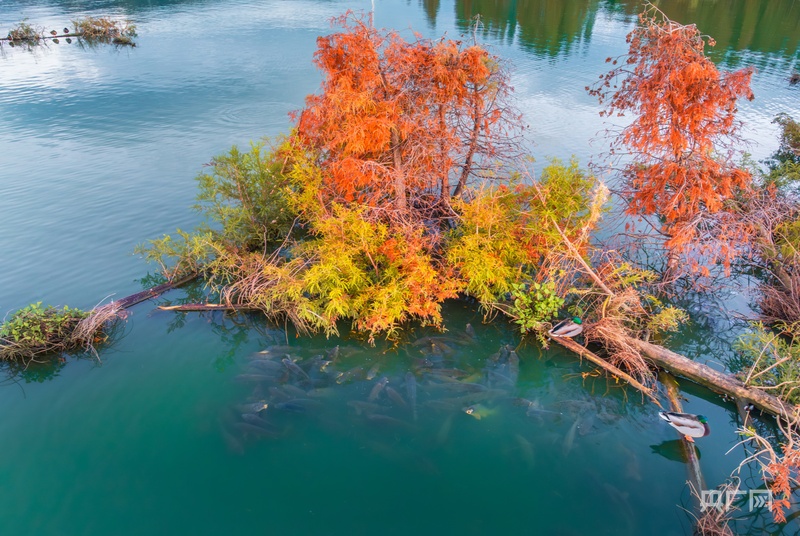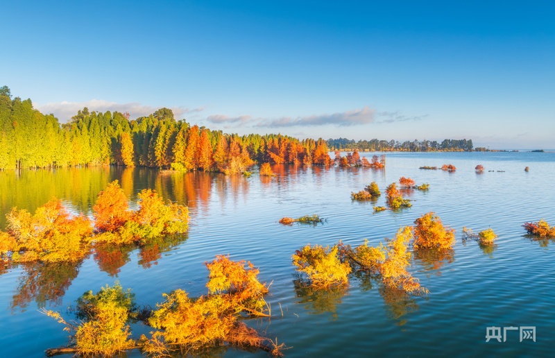央广网昆明11月25日消息(记者赵贝贝通讯员宋光旭)初冬时节云南晋宁南滇池国家湿地公园风光旖旎,水杉的红叶与静谧的湖水相映成趣,为这片水域增添了一抹温暖的色彩,越冬候鸟在这里栖居一幅万物和谐共生的生态画卷让南滇池活力无限。