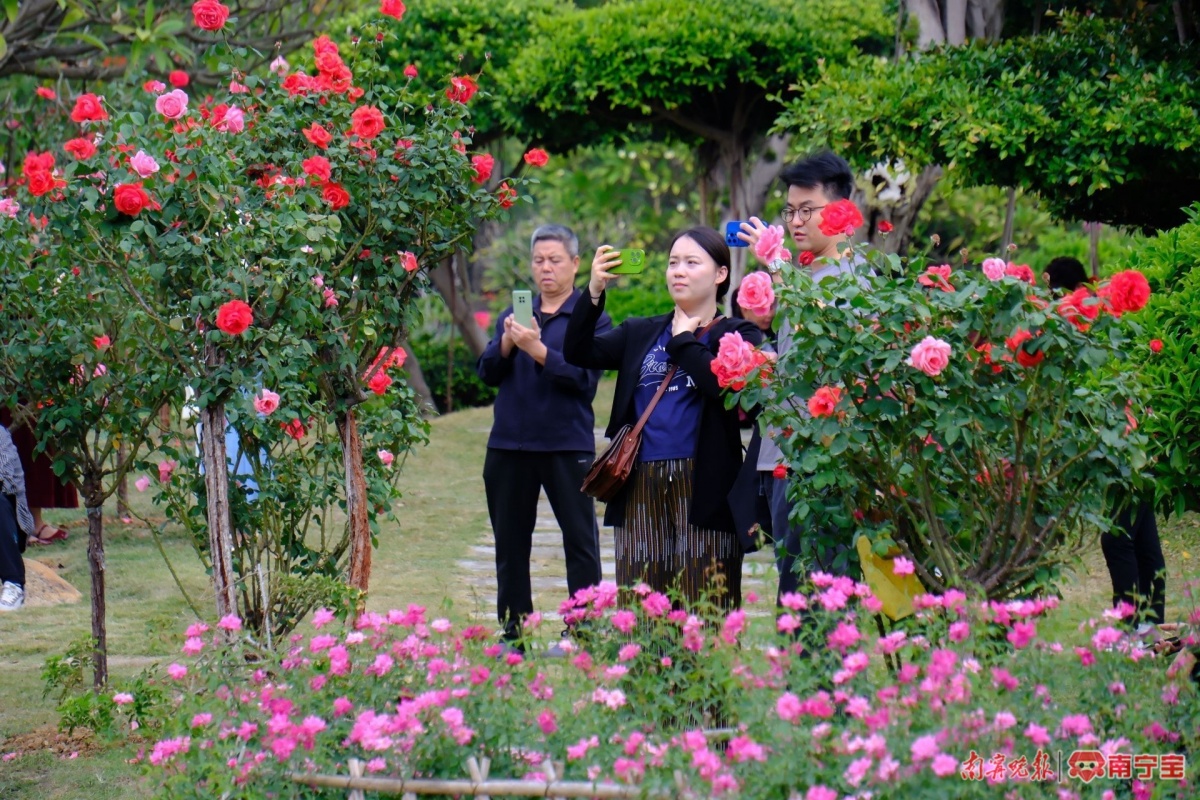 据了解,目前南湖公园的月季集中种植在大树盆景园区域,占地面积约2万平方米,引进约2万株。类别有树状月季、大花香水月季、丰花月季、微型月季,品种有粉扇、绯扇、金凤凰、梅郎口红和白葡萄酒等。整个月季园搭配错落有致,层次分明,构成鲜艳明快的景观效果。目前,园中月季已经进入盛花期,等待游客来观赏。