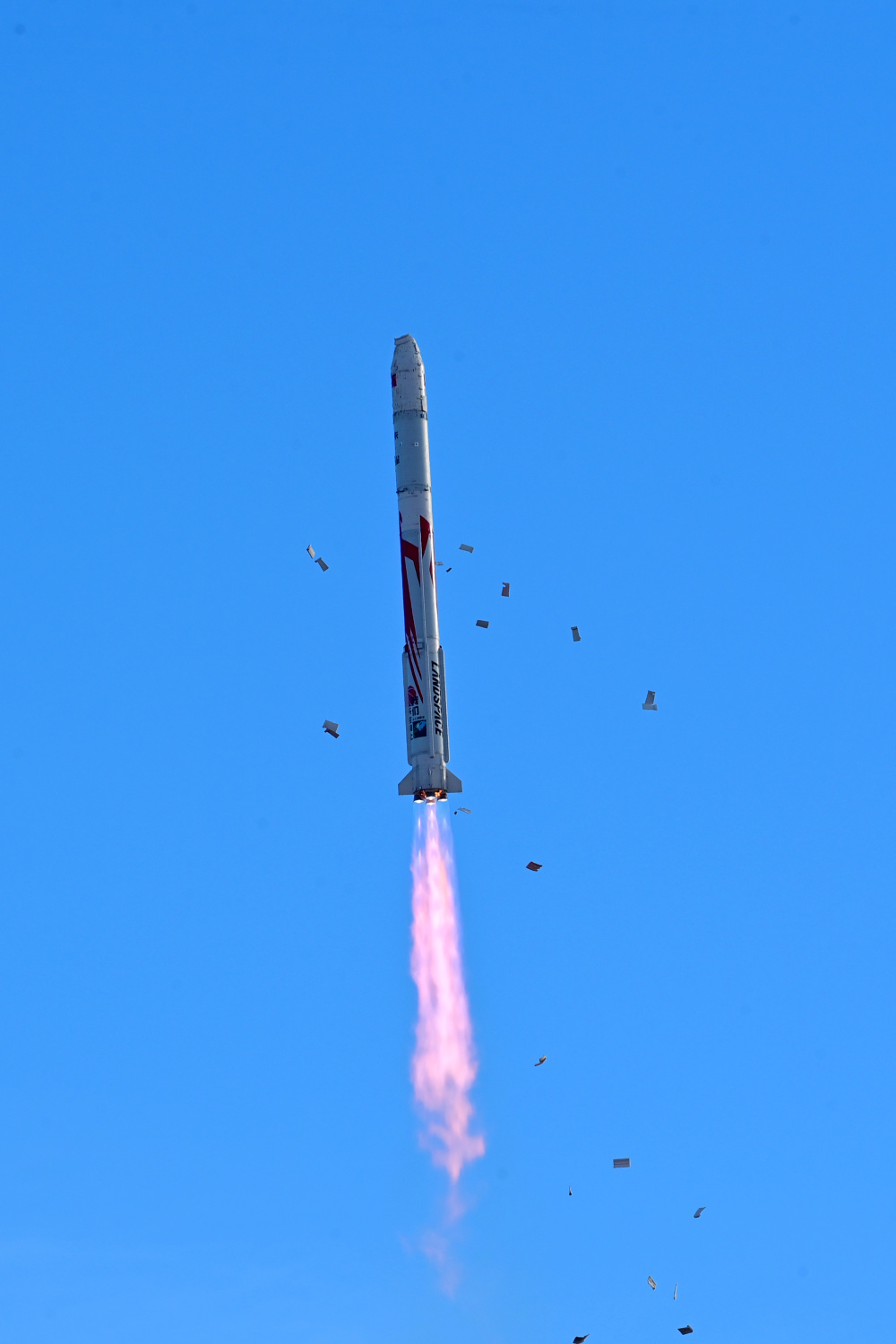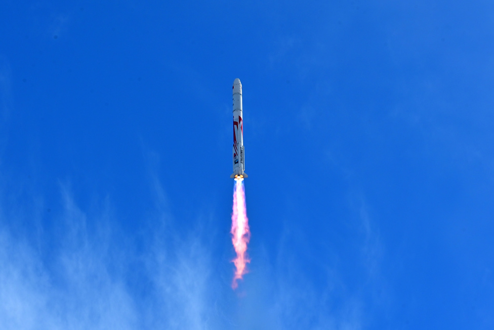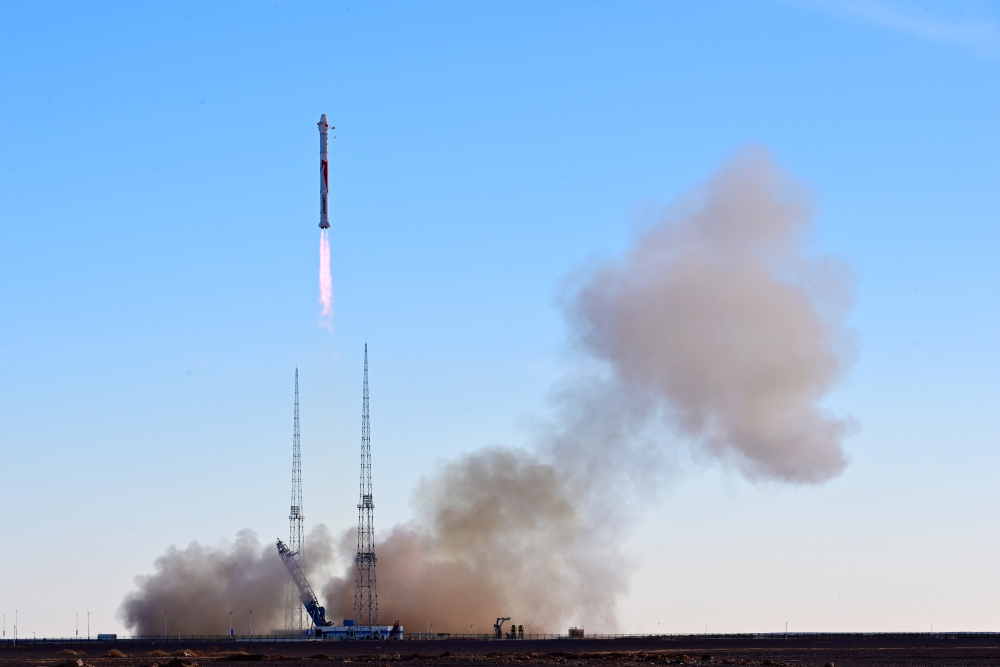 11月27日10时00分,朱雀二号改进型遥一运载火箭在东风商业航天创新试验区发射升空,将搭载的光传01、02试验星顺利送入预定轨道,飞行试验任务获得圆满成功。新华社发(汪江波 摄)