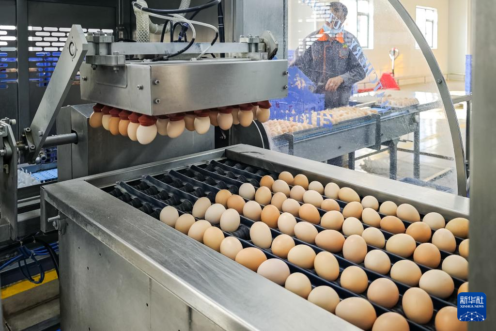 11月29日,石门县一家家禽加工企业码蛋车间的真空吸蛋器在作业。新华社记者陈思汗摄